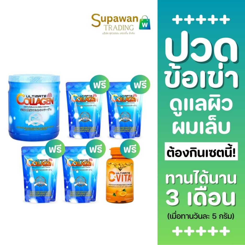 [1 แถม 5] Ultimate Collagen อัลติเมท คอลลาเจน บำรุงข้อเข่า กระดูก ผิวพรรณ ละลายง่าย