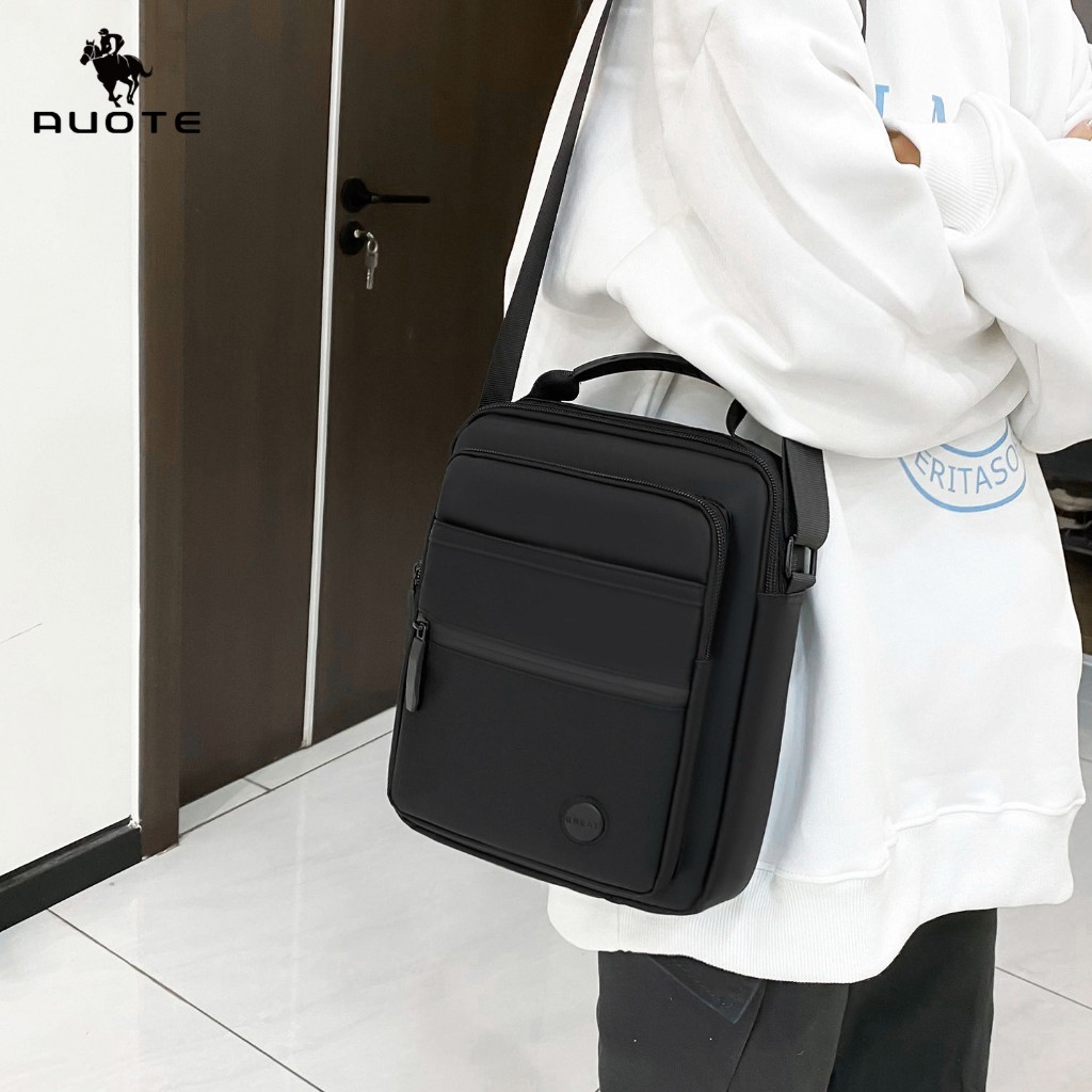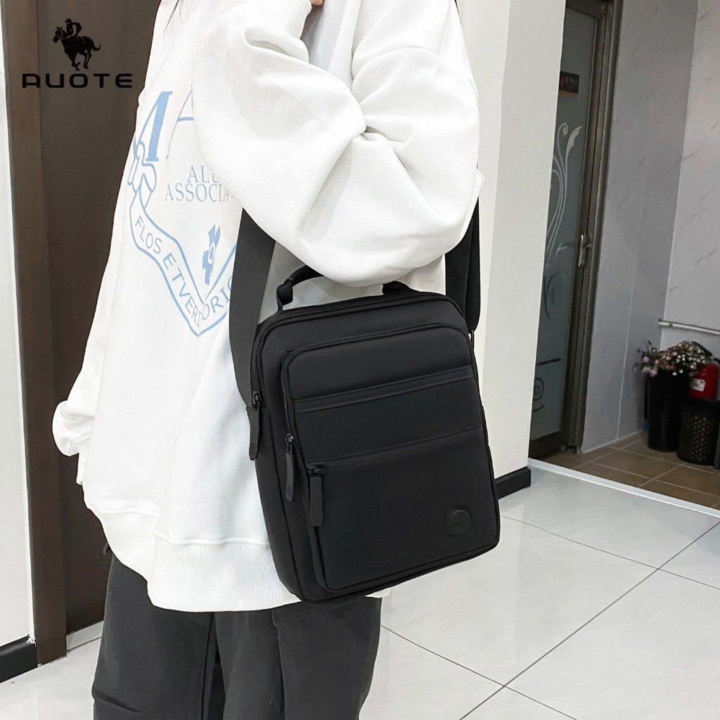 AUOTE กระเป๋าคาดไหล่แฟชั่นสำหรับผู้ชาย ดีไซน์หลายช่อง ความจุขนาดใหญ่ กันน้ำ น้ำหนักเบา กระเป๋าคาดลำตัวแบบสปอร์ต