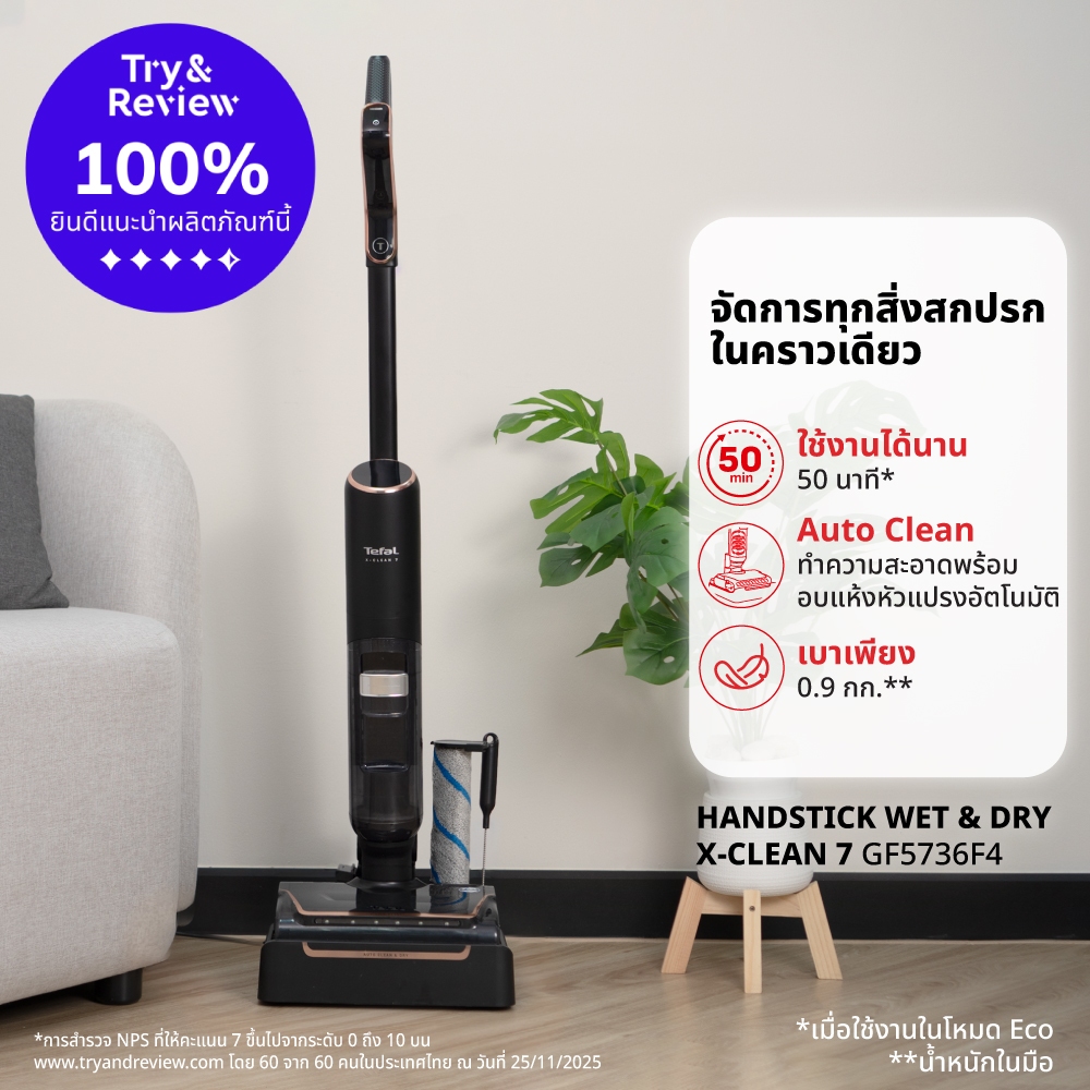 [สินค้าใหม่] Tefal เครื่องดูดฝุ่นถูพื้นไร้สาย ดูดน้ำได้ กำลังดูด 250 แอร์วัตต์ FLOOR WASHER X-CLEAN 7 รุ่น GF5736F4