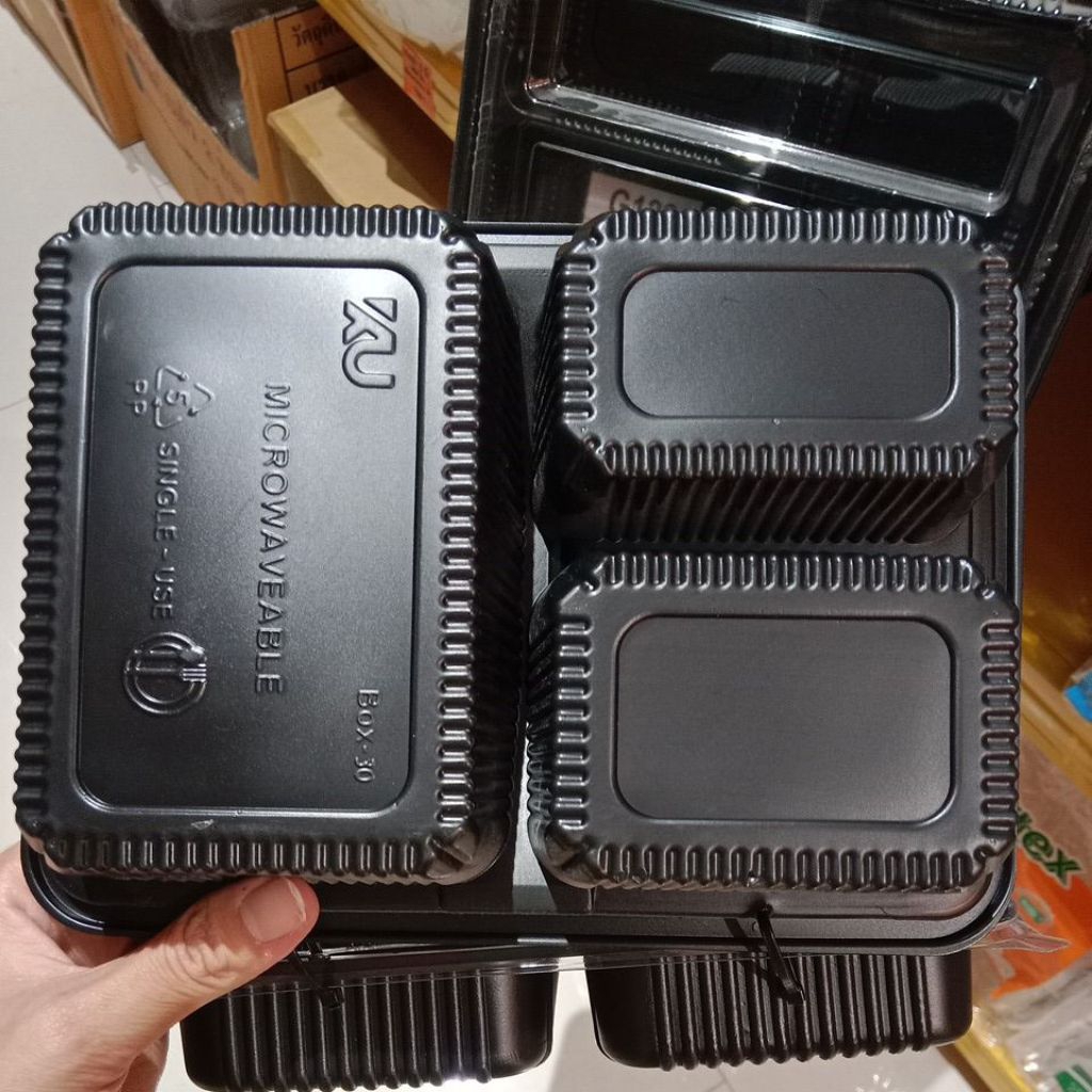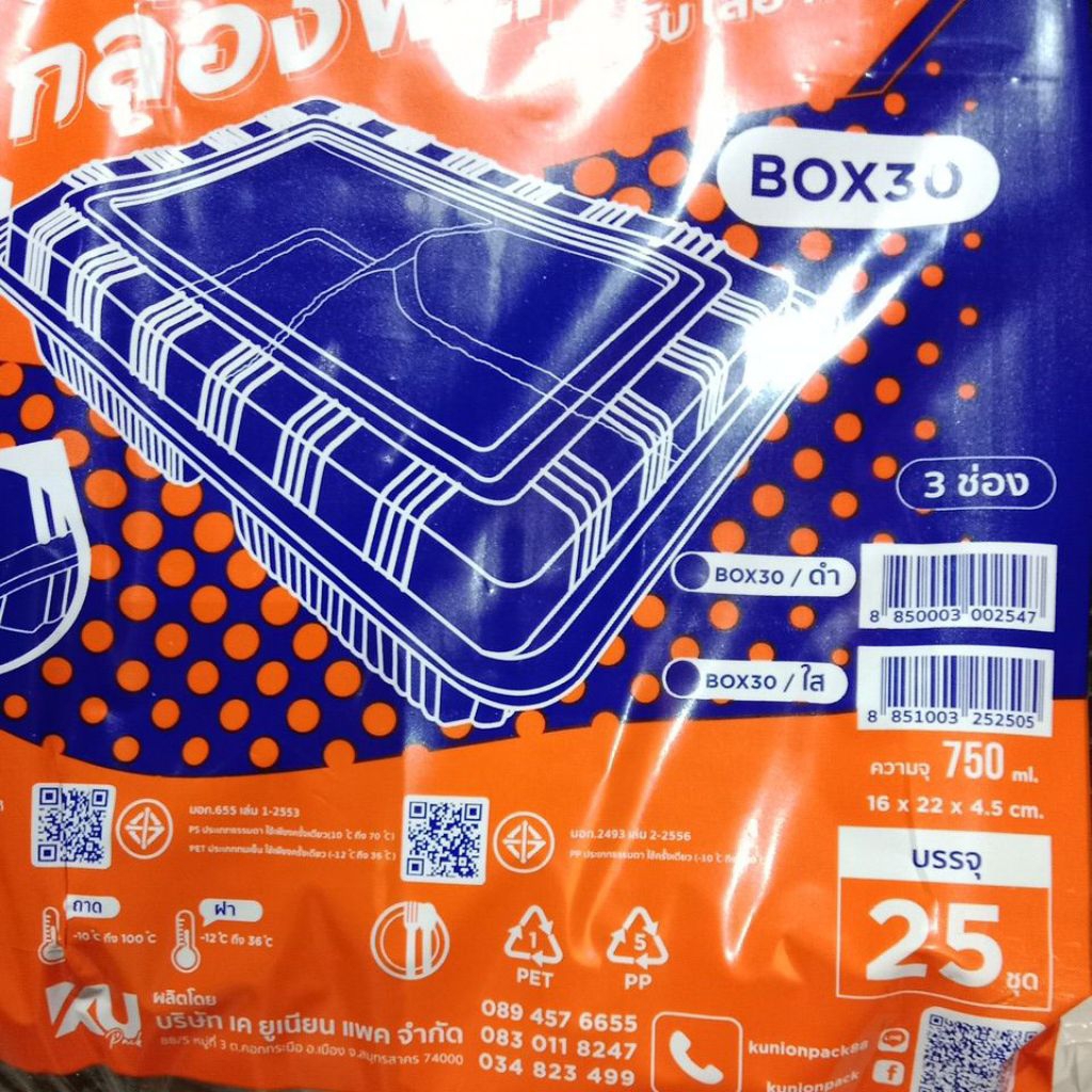Ku กล่องอาหารสีดำ 3 ช่อง Box30 750ml. บรรจุ 25 ชุด