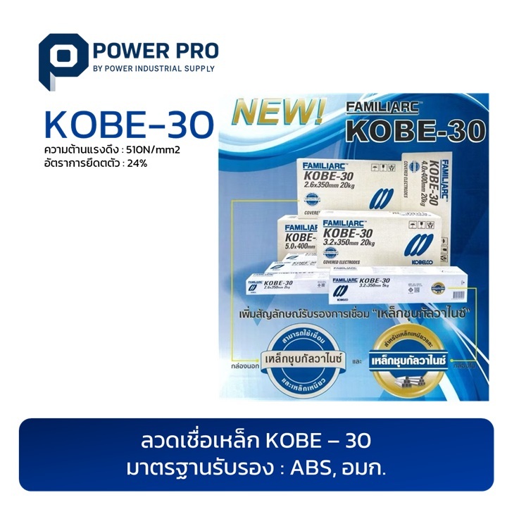 Kobelco KOBE-30 ลวดเชื่อมโกเบ ของแท้ [ยกกล่อง 20kg] ขนาด 2.6 / 3.2 / 4.0 มม. | POWER KOBE