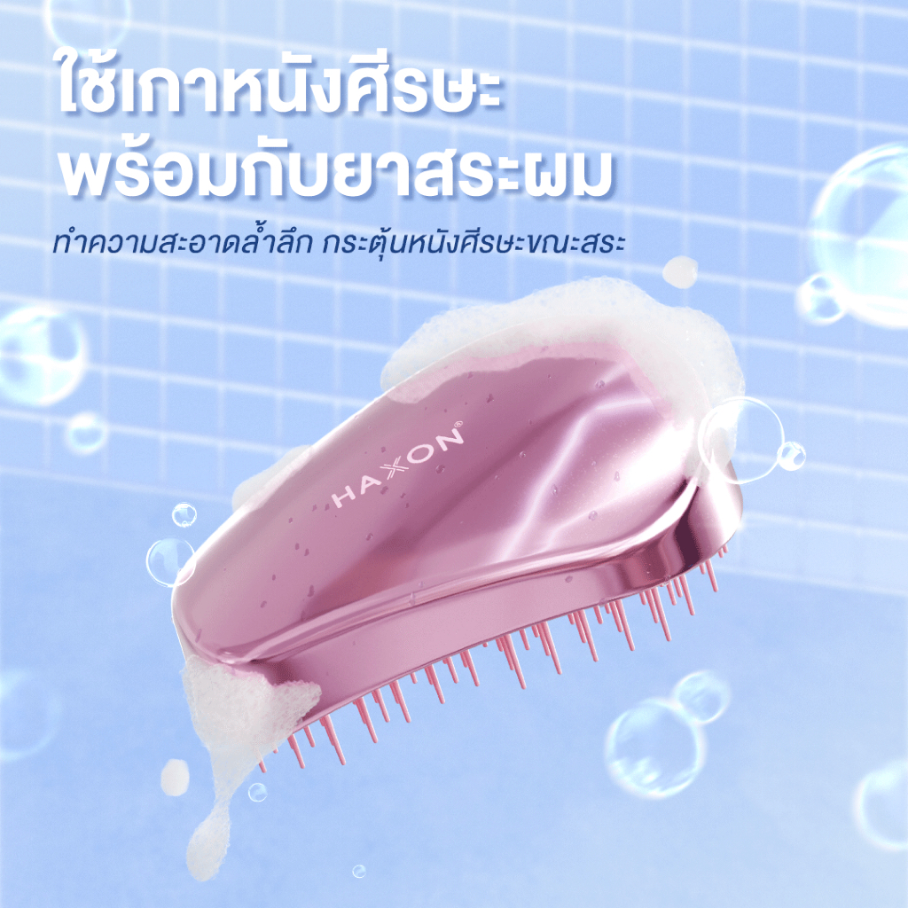 Haxon 2 in 1 Duo Scalp Detangler Palm Brush │แปรงหวีผมอเนกประสงค์│หวี+สระผม│พกพาสะดวก │ ขนนุ่ม │นวดหนังศีรษะ