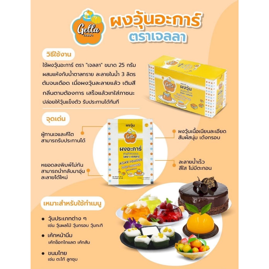 ผงวุ้น(ผงอะการ์) ผงเยลลี่ (ผงแคร์ราจีแนน) วุ้น เยลลี่ ตราเจลลา ขนาด 25 กรัม