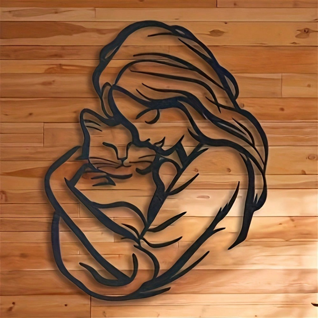 Feline Embrace Metal Wall Art – Craft Silhouette หรูหรา, การติดตั้งที่เรียบง่ายและสร้างเหล็กแข็งแรง – ผู้ที่ชื่นชอบแมว, พิธีขึ้นบ้านใหม่, ตกแต่งห้อง