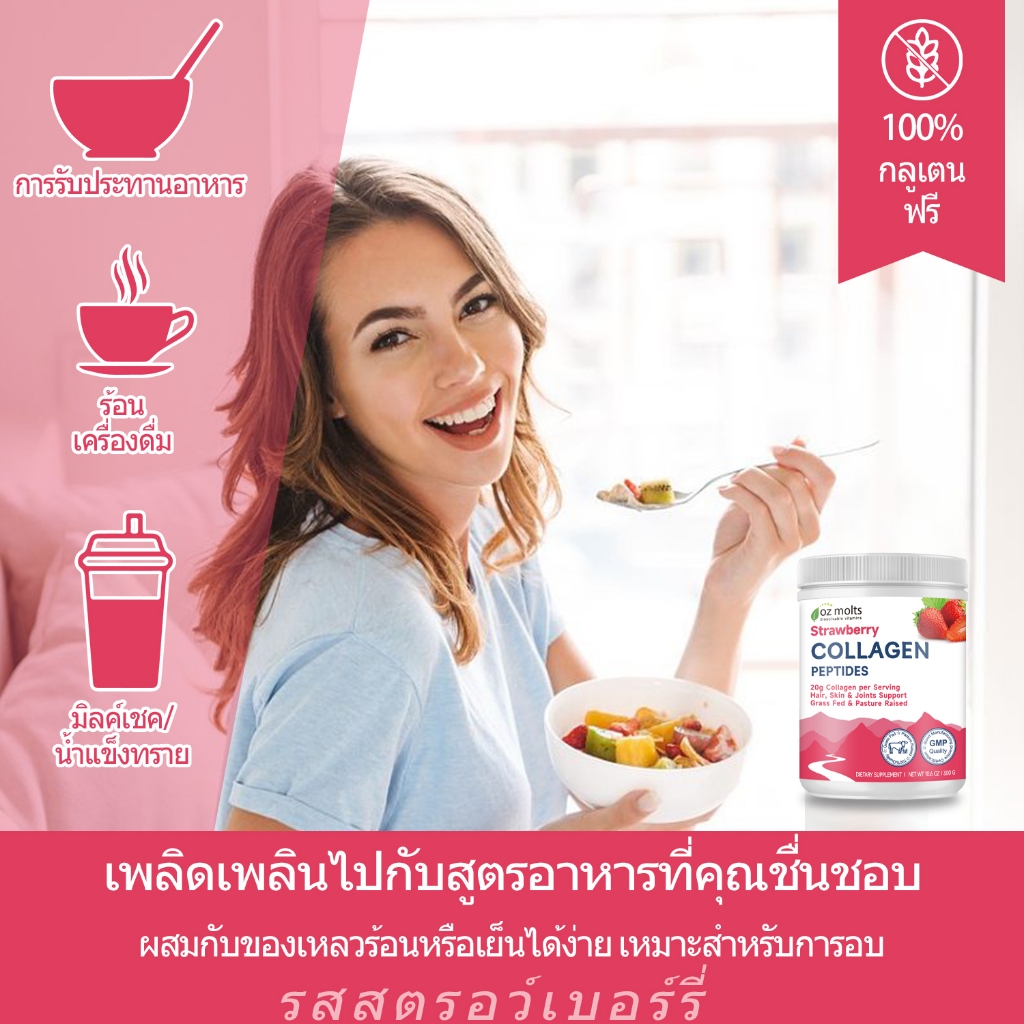 Ozmolts Collagen Protein Powder คอลลาเจน เสริมแคลเซียม เสริมสร้างกระดูก สุขภาพผิว Strawberry 300g
