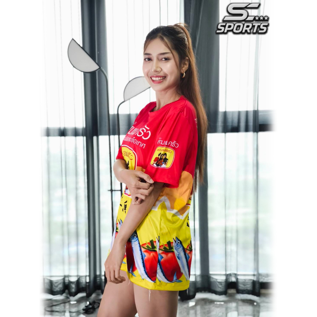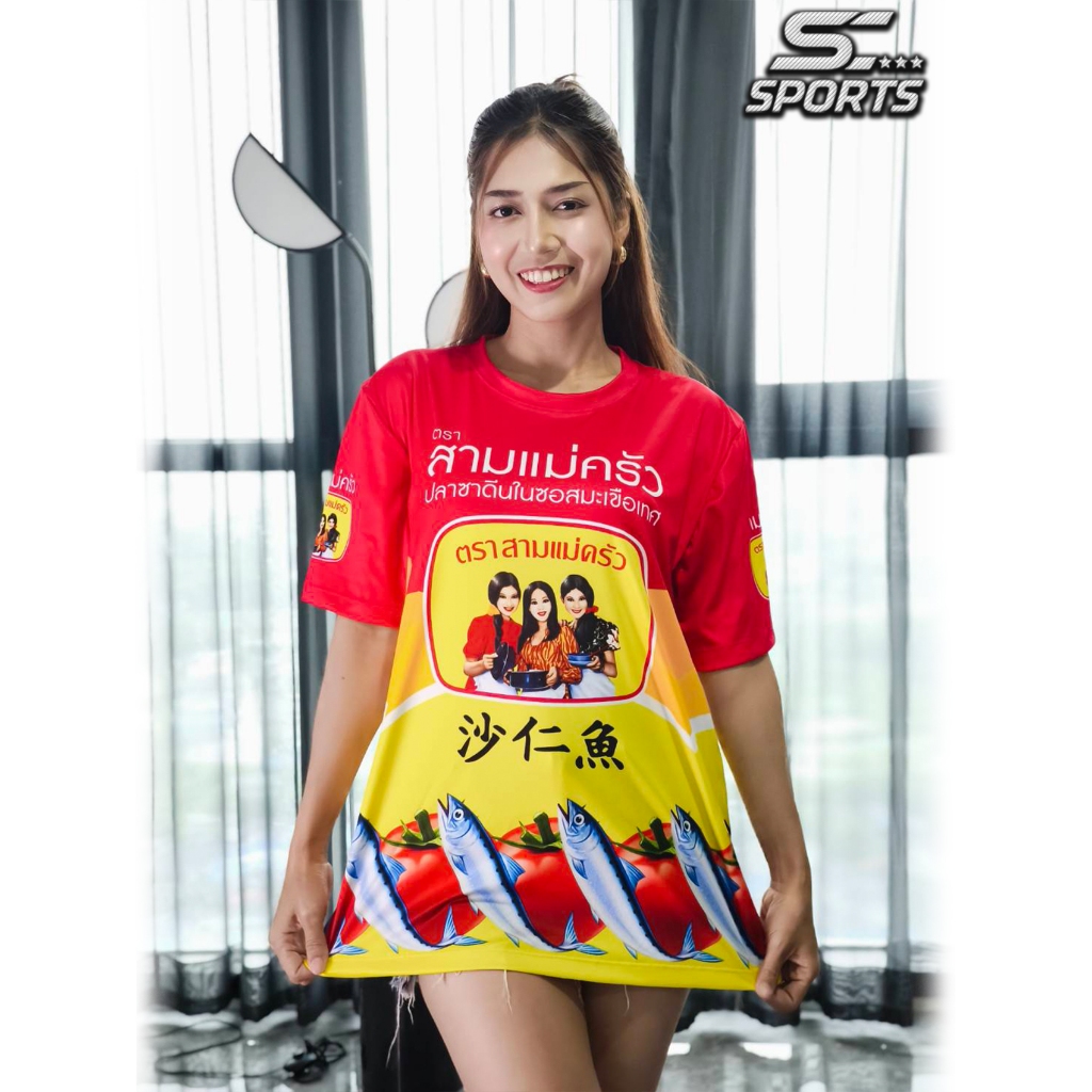 เสื้อพิมพ์ลาย เสื้อกีฬา ลายปลากระป๋องสามแม่ครัว งานจริงสวยสีสดคมชัด หนา145g นุ่มลื่นใส่สบายรับประกัน