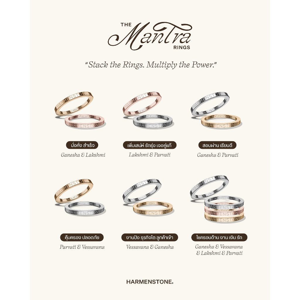 HARMENSTONE แหวนซ่อนยันต์ ๕ องค์เทพศักดิ์สิทธิ์ | The Mantra Rings -พระพิฆเนศ ท้าวเวสสุวรรณ พระแม่ลักษมี พระแม่อุมา
