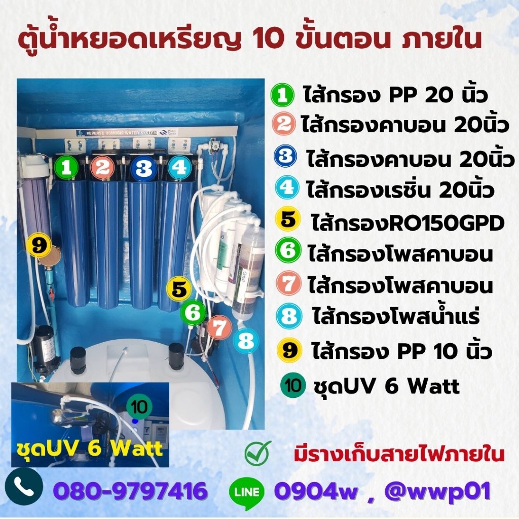 ตู้น้ำหยอดเหรียญขนาดใหญ่200ลิตรรุ่นมีมิตเตอร์น้ำไฟ10ขั้นตอนRO+น้ำแร่ กำลังผลิต 1,200 ลิตรต่อวัน