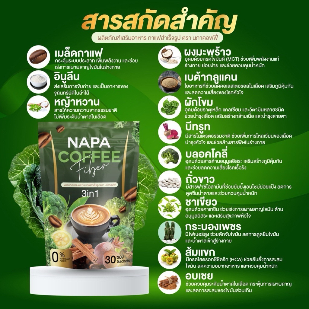 โปร 1 แถม 1 ห่อ (60ซอง) NAPA VGE MIXกาแฟลดไขมันเบาหวาน ความดัน ลำไส้