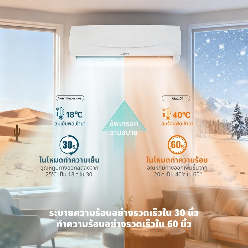 [Pre-sale4.30]Zinney แอร์ Inverter ขนาด 9,500 BTU รุ่น ZAC-BP09A เครื่องปรับอากาศติดผนัง เย็นเร็ว ทนทาน ประหยัดไฟ