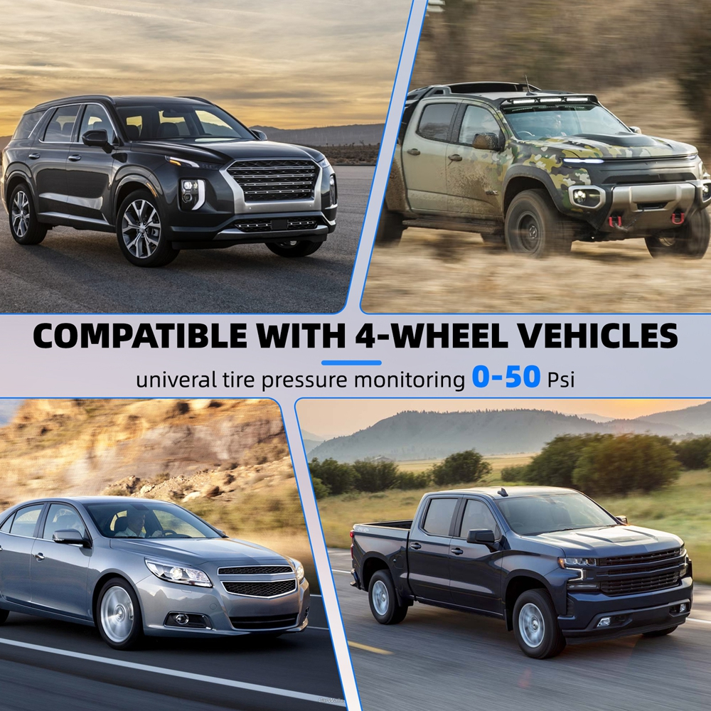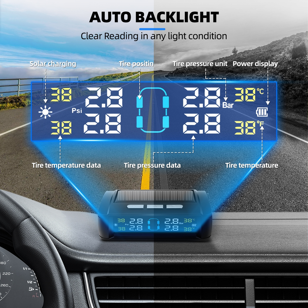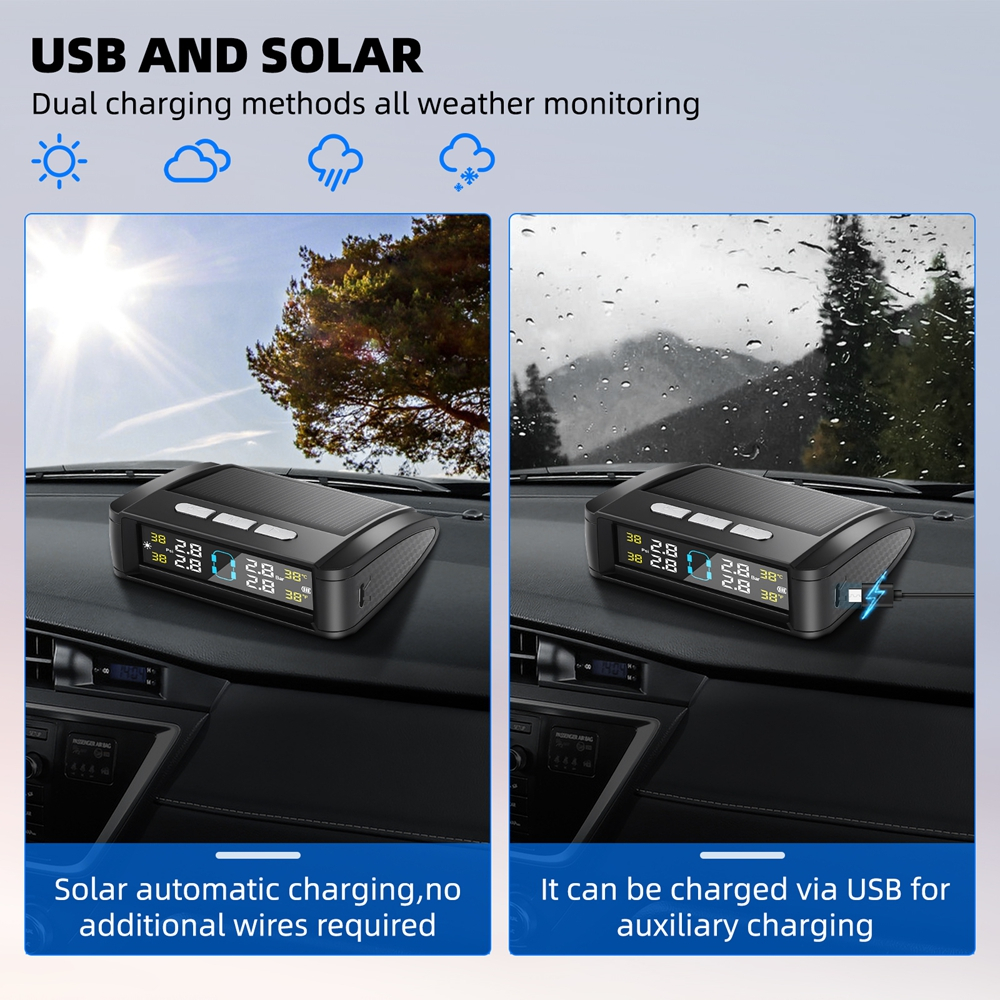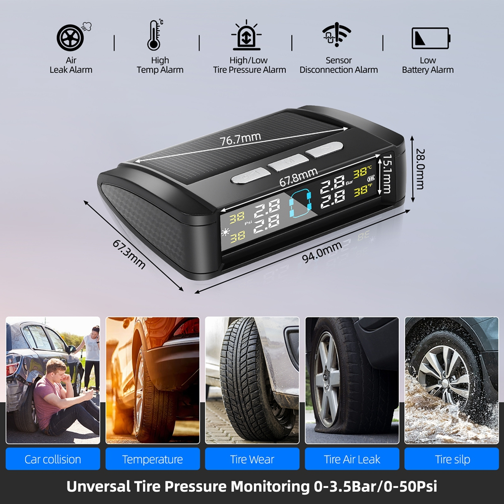 TPMS Car Solar/USB Dual Power ระบบตรวจสอบความดันยาง (TPMS) พร้อมจอแสดงผลเรียลไทม์และสัญญาณเตือนแรงดันต่ํา,สําหรับยานพาหนะสี่ล้อสากล