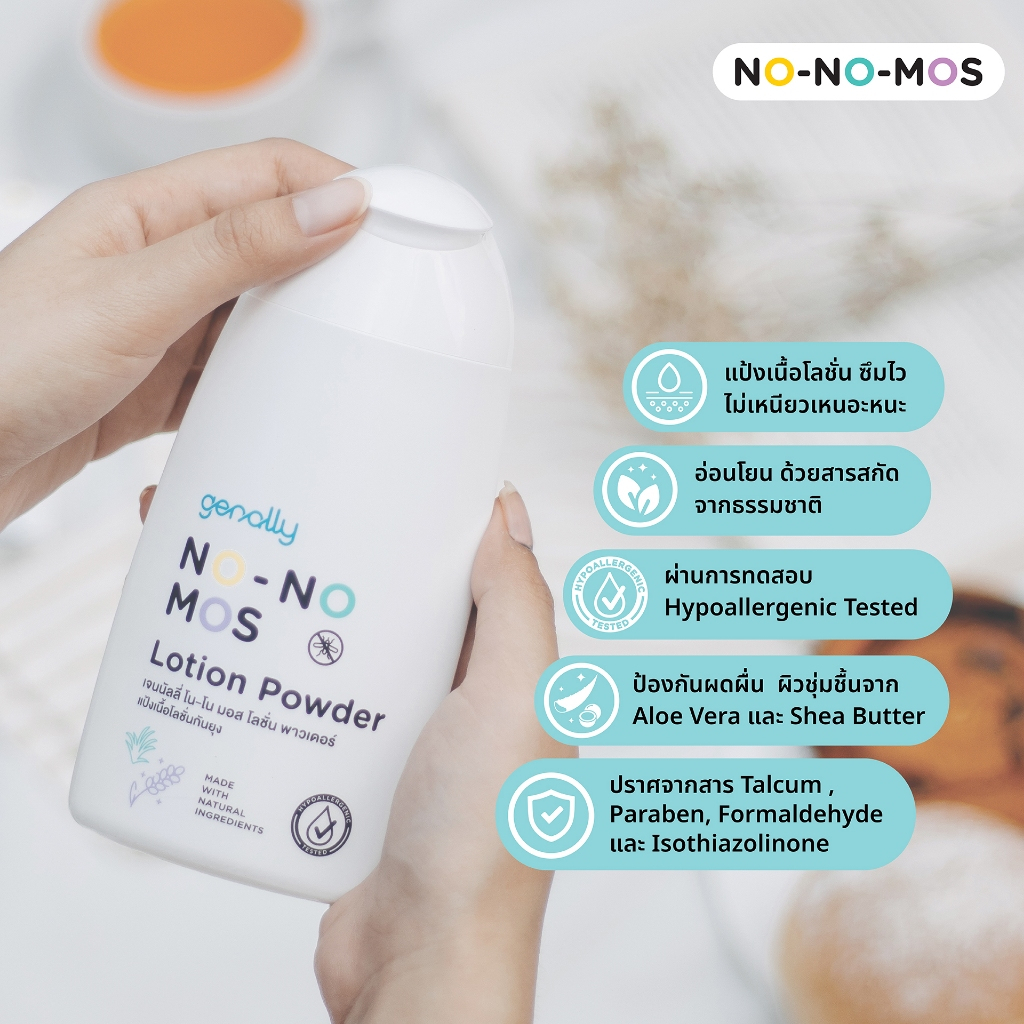 [แพ็ค 2 ขวด] Genally No No Mos แป้งโลชั่นกันยุง สารสกัดธรรมชาติ อ่อนโยนต่อผิว ปลอดภัยสำหรับเด็กทารก 80g