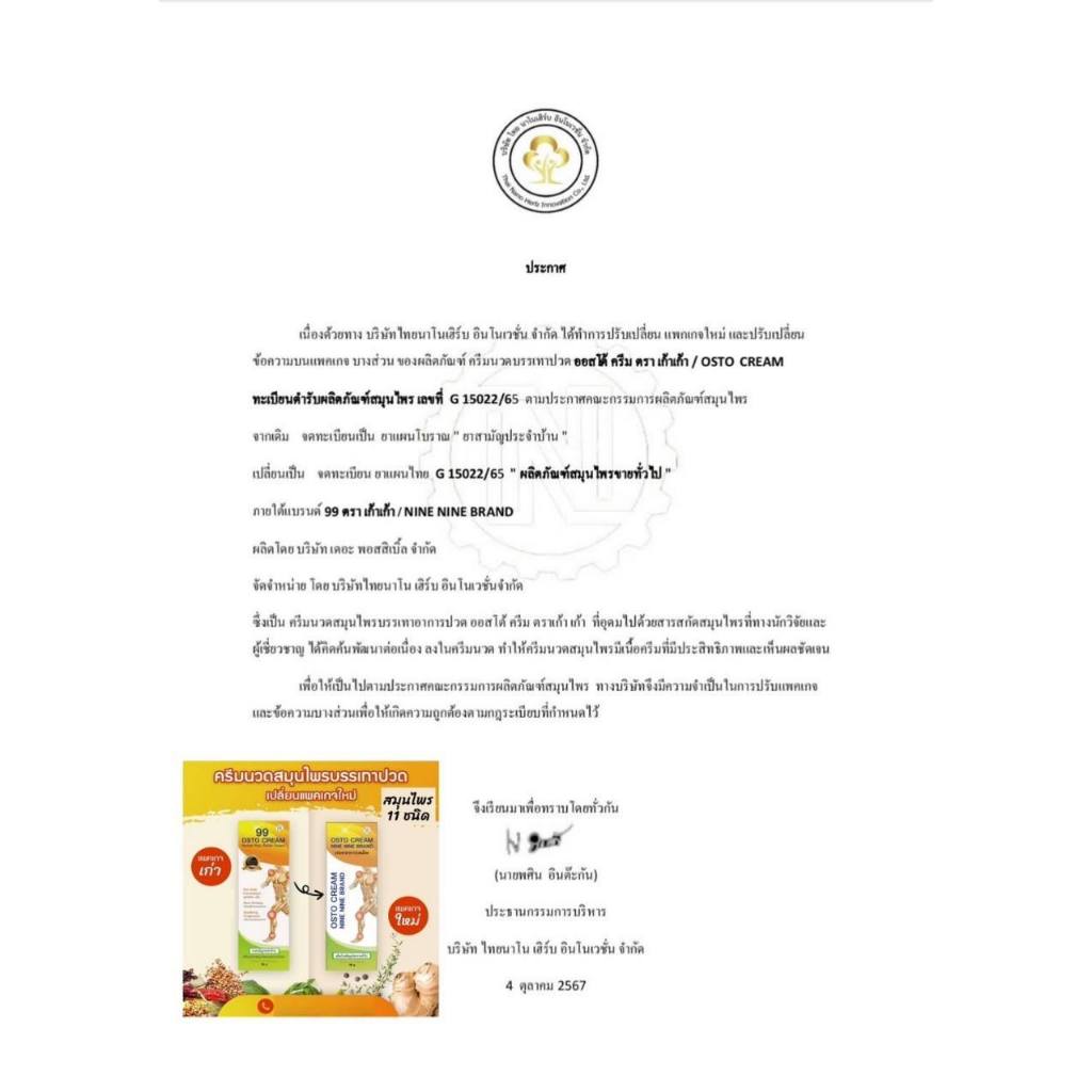ของแท้✅ ครีม 99 นาโน ครีมนวดสมุนไพร 99 OSTO Cream ครีมนวดผ่อนคลายกล้ามเนื้อ by ดร.ออย 50 กรัม