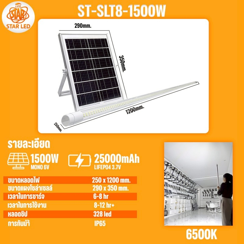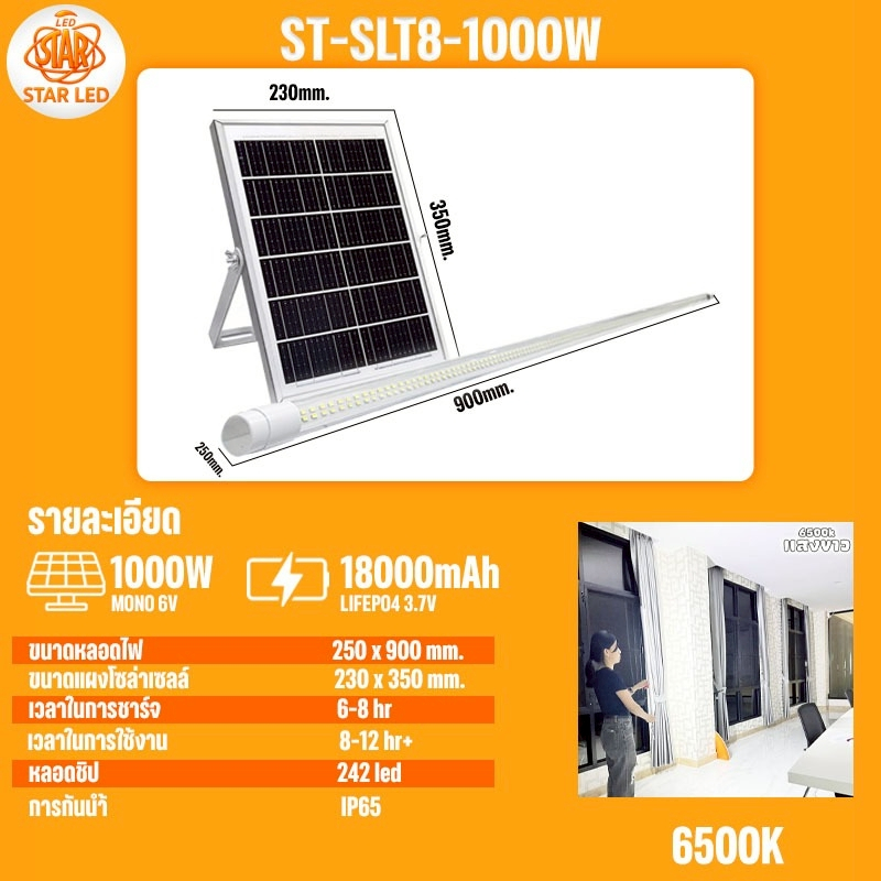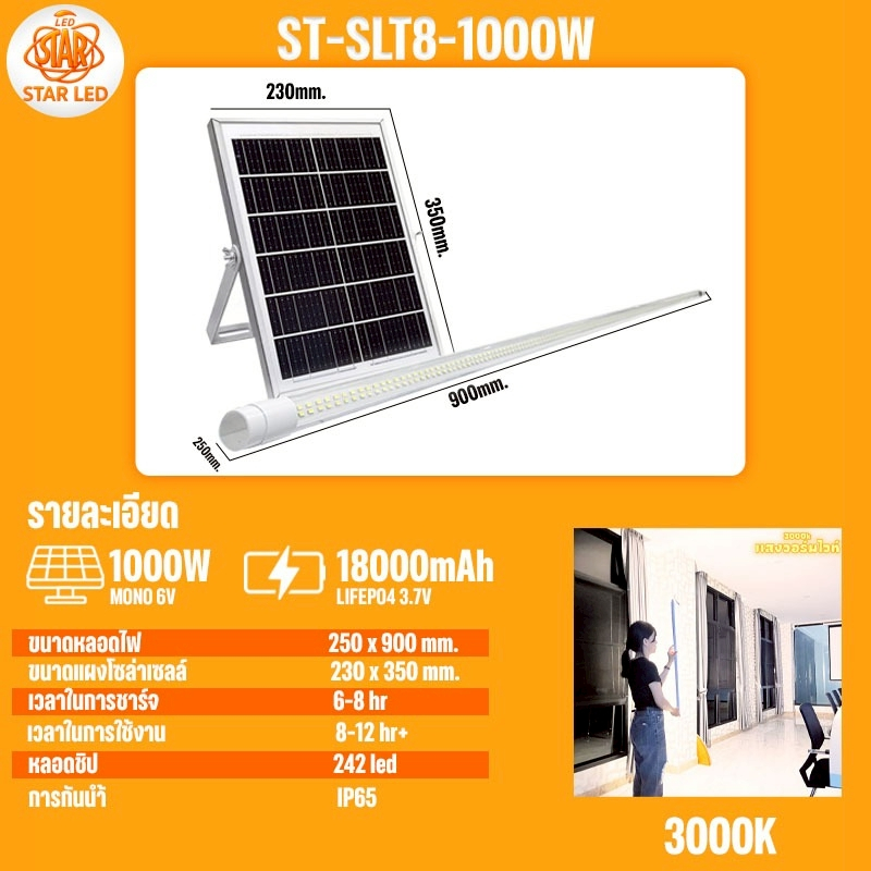 หลอดไฟโซล่าเซลล์ ST-SLT8-1000W/ST-SLT8-1500W แสงขาว/แสงวอมไวท์ หลอดนีออน 242 LED สว่างยันเช้า กันน้ำ