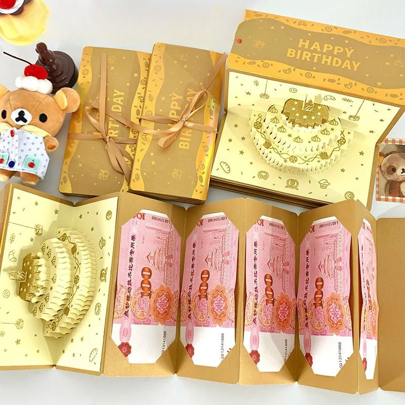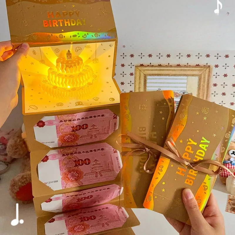 COD กล่องของขวัญวันเกิด DIY ดนตรี+โคมไฟ ซองจดหมายสีแดง การ์ดวันเกิด 3 มิติ