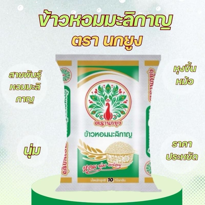 ข้าวหอมมะลิกาญ ตรานกยูง ขนาด 10 กก. หอม นุ่ม อร่อย ข้าวหอมมะลิราคาประหยัด หอมมะลิกาญ