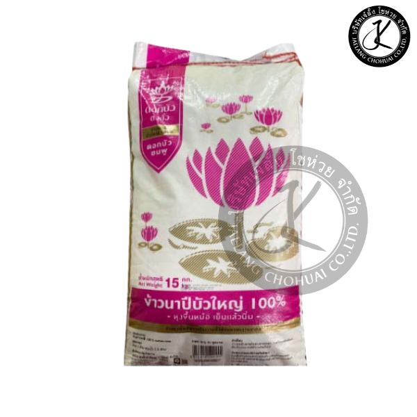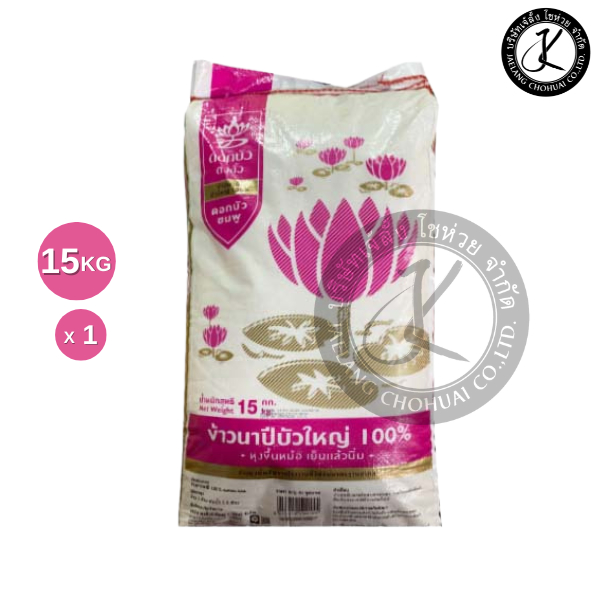 ข้าวตราดอกบัว ตงฮั้ว ดอกบัวชมพู ข้าวนาปีบัวใหญ่ 100% 15 กิโลกรัม
