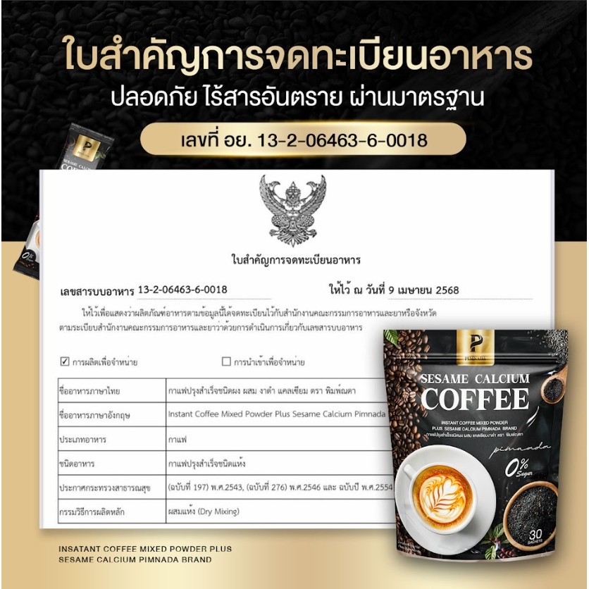 กาแฟงาดำ Sesame calcium coffee ตราพิมพ์ณดา โปร 1แถม1 ฟื้นฟูข้อต่อ บำรุงกระดูก ปวดเข่า ผิวพรรณดูสดใส