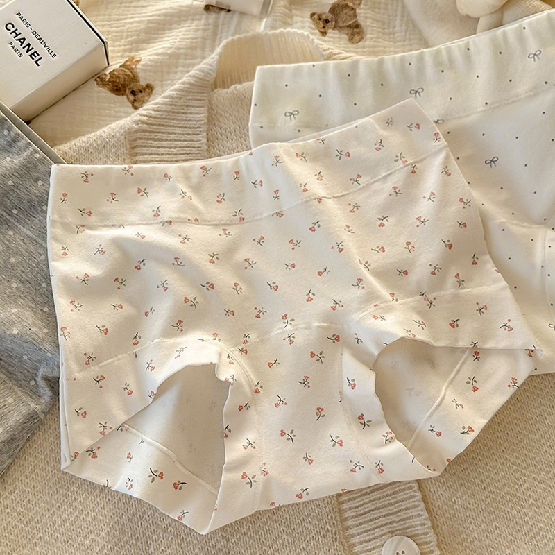 ✨กางเกงชั้นในผู้หญิงไซส์ใหญ่ กางเกงบ็อกเซอร์ เนื้อผ้าคอตตอนแท้ กันโป๊ นุ่ม ใส่สบาย ลายดอกไม้จุด ไม่บีบสะโพก ไม่รัดผิว