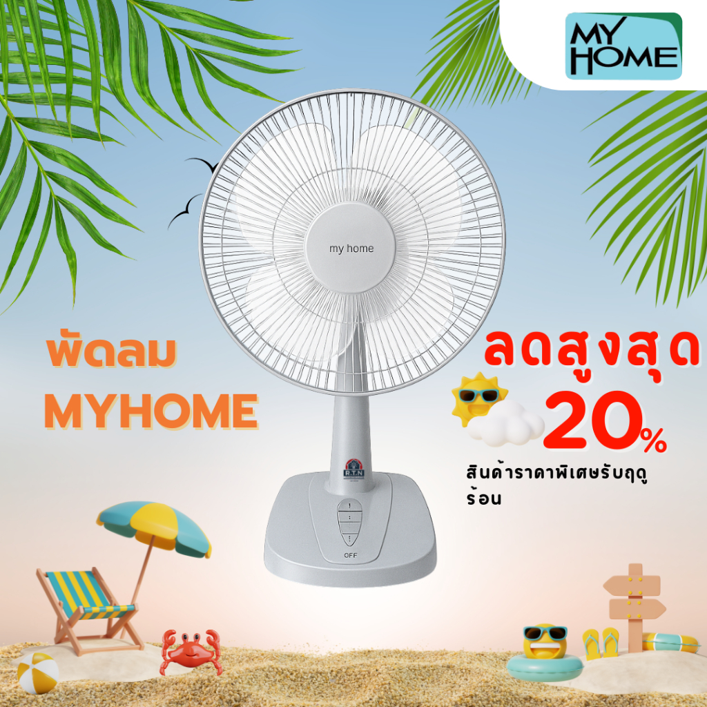 MYHOME พัดลม 12 นิ้ว ลมแรง ทนทาน พัดลมตั้งโต๊ะ