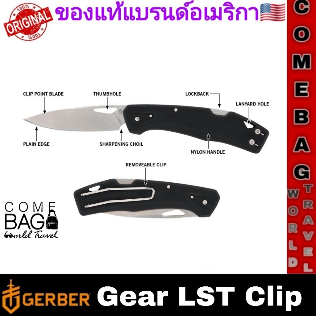 มีดพับGerber LST Clip Lockback ใบมีดแบบ Clip Point ขนาด 2.5 นิ้ว เคลือบStonewashed ของแท้‼️ แบรนด์อเมริกา🇺🇸🇺🇸