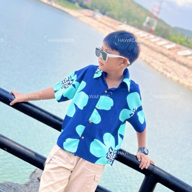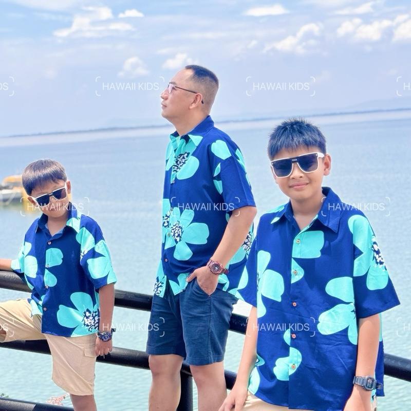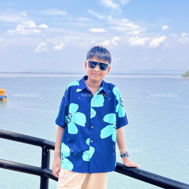 🔥ราคาส่ง เสื้อฮาวายลายดอกไม้ สีกรม ทรงโอเวอร์ไซส์สไดล์เกาหลี ใส่ได้ทั้งครอบครัว อก 28-46"