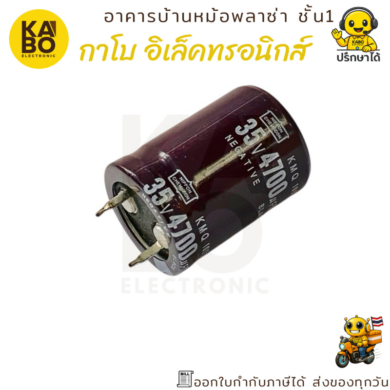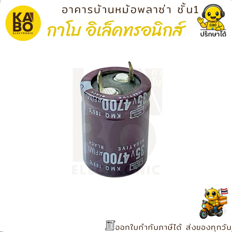 คาปาซิเตอร์ Nippon 4700uF 35V 105°C ขนาด 22x30mm ตัวเก็บประจุไฟฟ้าแบบอิเล็กโทรไลต์สำหรับวงจรเพาเวอร์ซัพพลาย
