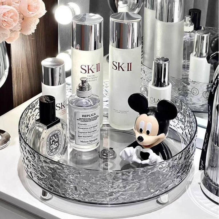 ถาดเก็บของทรงกลม หมุนได้ 360 องศา ดีไซน์เรียบหรู วางของได้เยอะ เก็บเครื่องสำอาง เครื่องปรุงต่างๆ