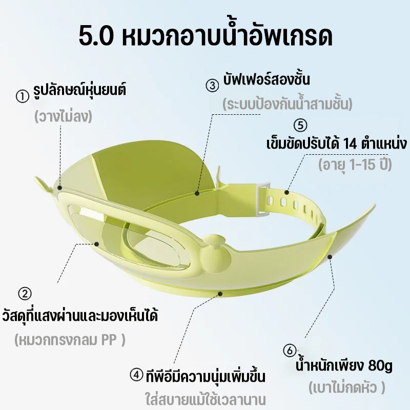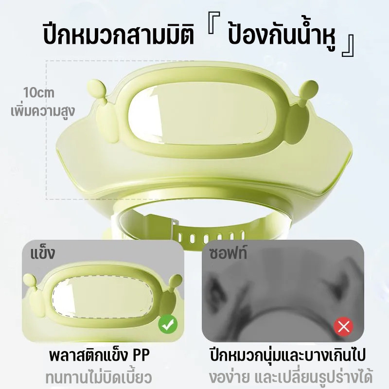 หมวกสระผมเด็ก หมวกอาบน้ำเด็ก การสวมหัว 2 แบบ ป้องกันแชมพูเข้าตา ปรับขนาดได้