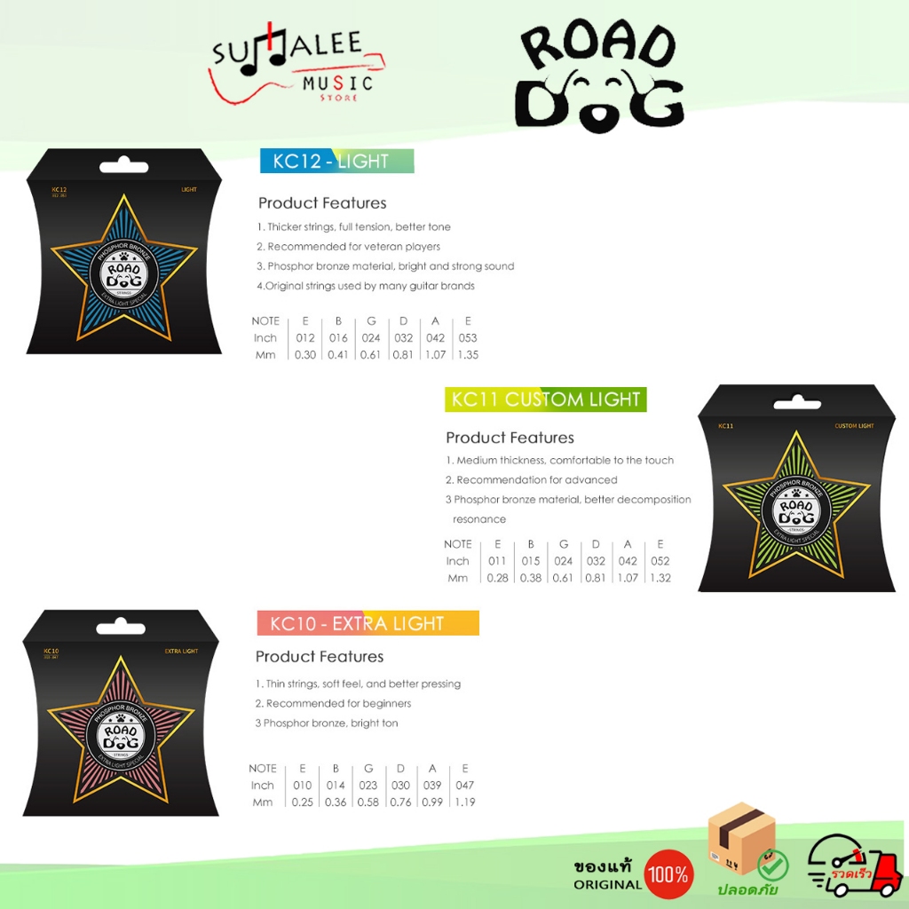 สายกีตาร์โปร่งแบบเคลือบกันสนิม Roaddog Acoustic Guitar Strings : KC10 KC11 KC12 (ของแท้ 100%)