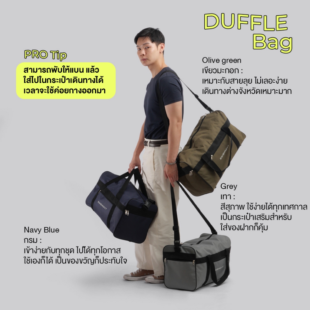 SWISHNAVY กระเป๋าเดินทาง สะพายข้าง รุ่น DUFFLE BAG 598 ขนาด 20 22 นิ้ว ทรงหมอน โพลีเอสเสตอร์
