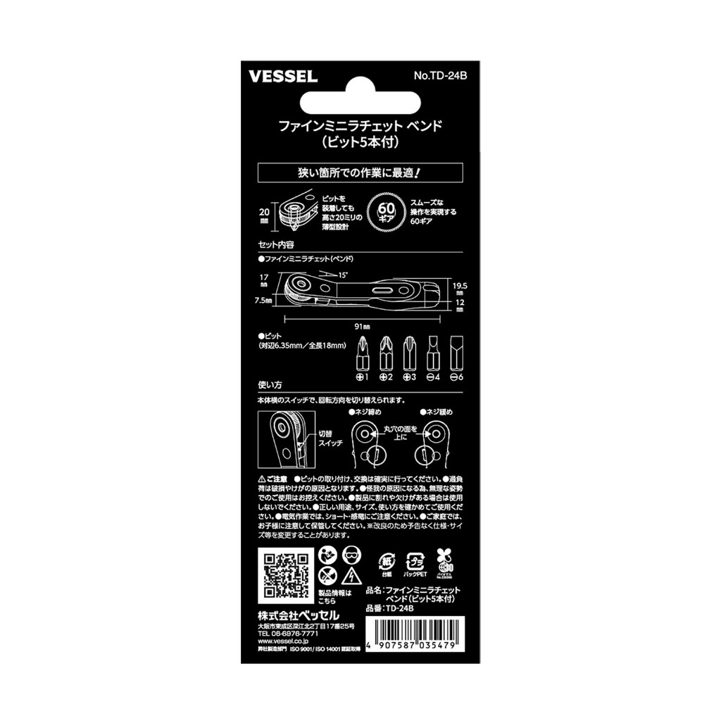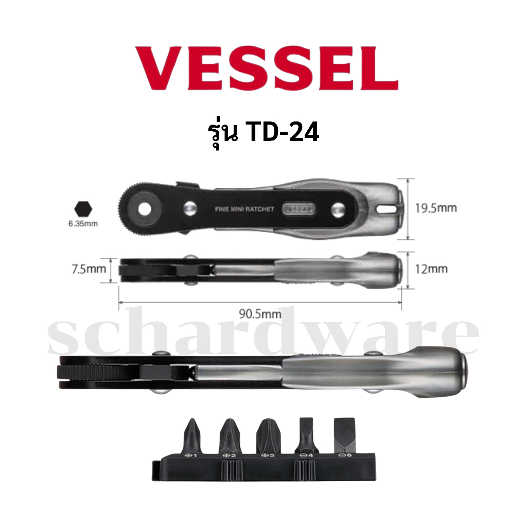 VESSEL ไขควงฟรีขันที่แคบ ไขควงฟรี ไขควงก๊อกแก๊ก รุ่น TD-24 และ TD-24B ผลิตที่ประเทศญี่ปุ่น