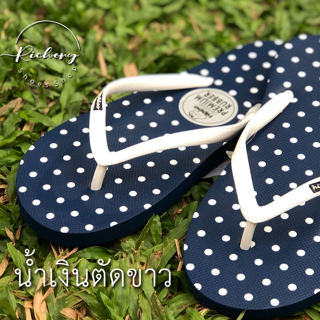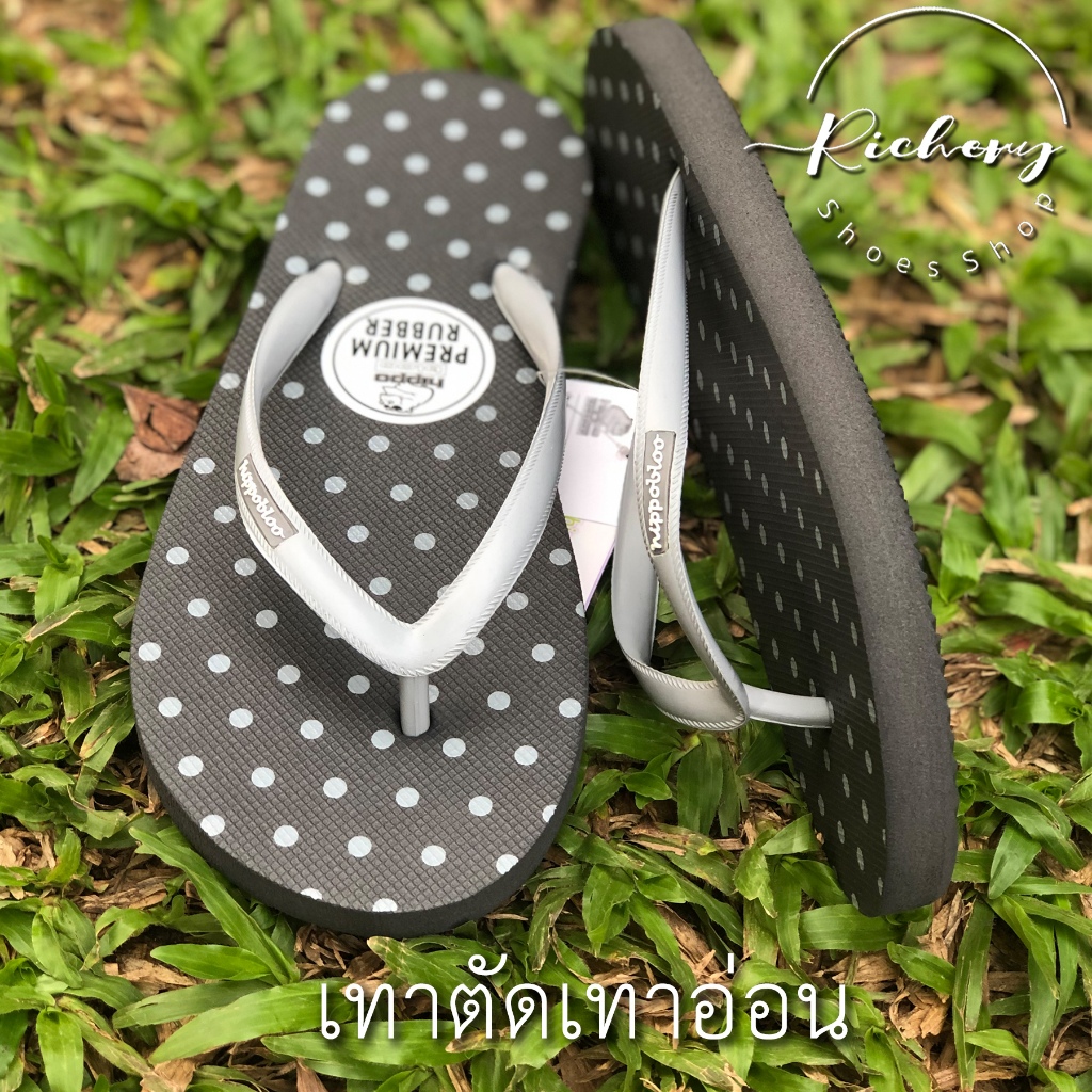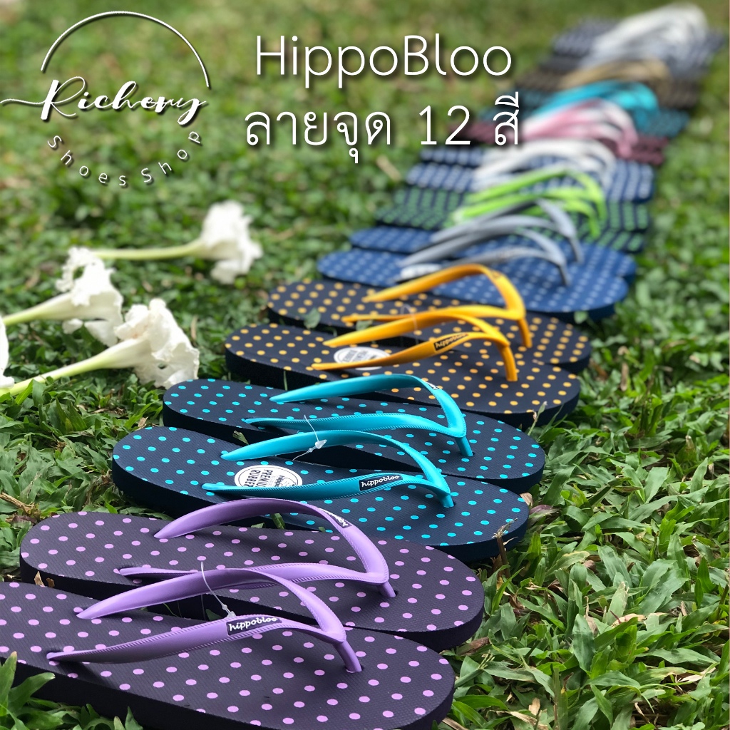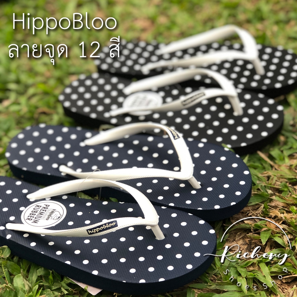 รองเท้าแตะ ลายจุด Hippo Bloo สีดำตัดขาว โทนเข้ม 12 สี รองเท้าใส่อยู่บ้าน sandals ฮิปโป บลู