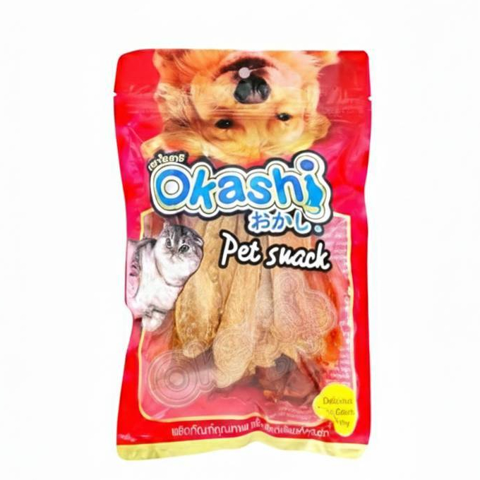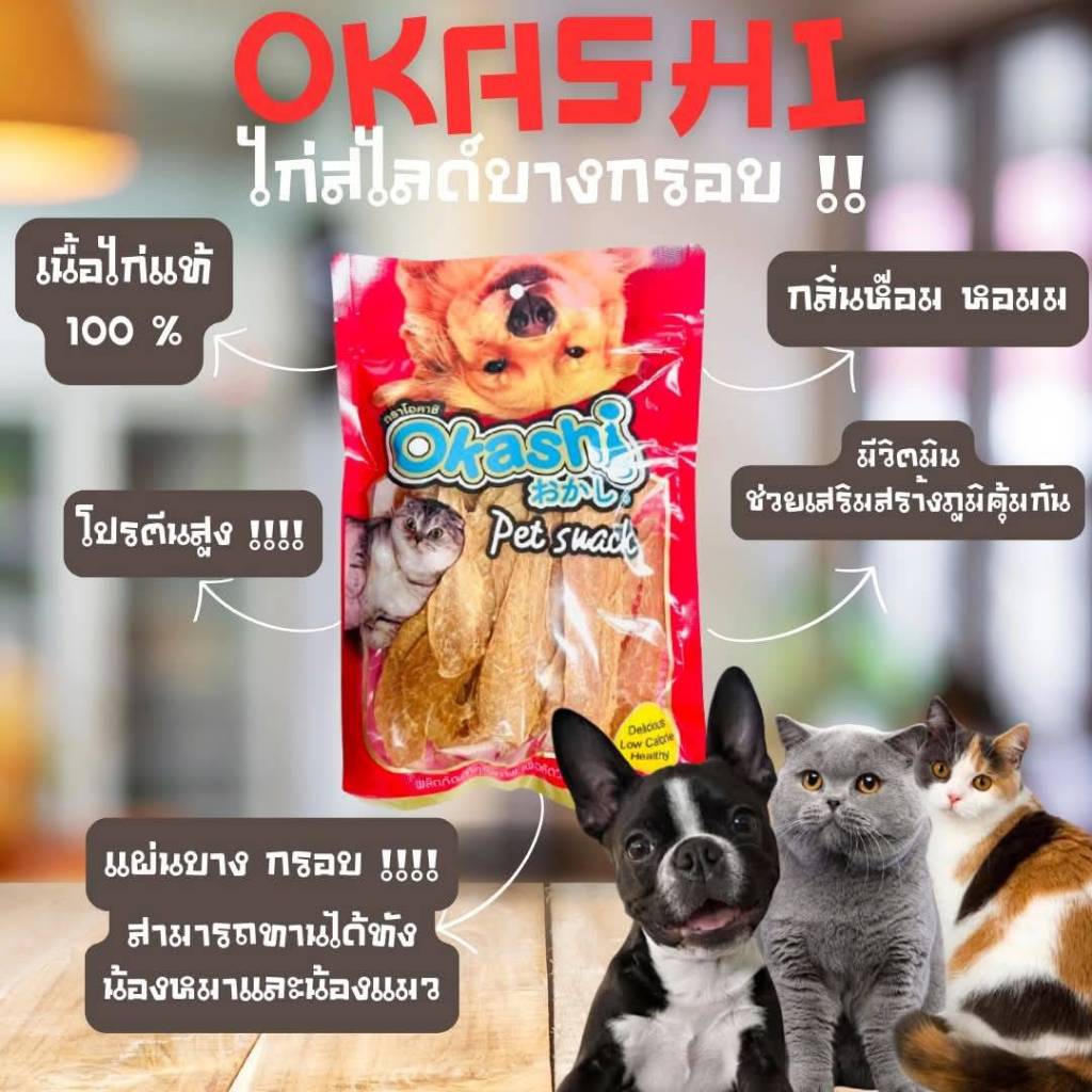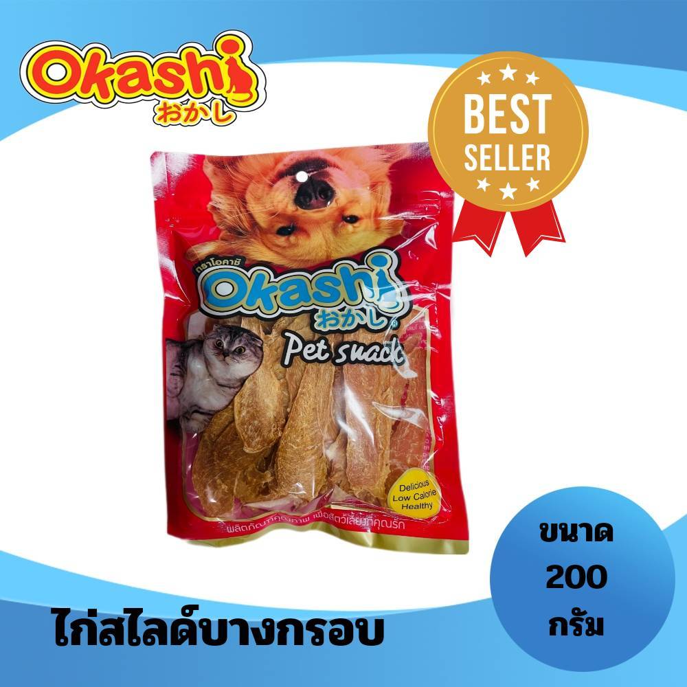OKASHI SNACK DOG AND CAT ขนมขบเคี้ยวสำหรับสุนัข และแมว (ไก่สไลด์บางกรอบ 200 กรัม)
