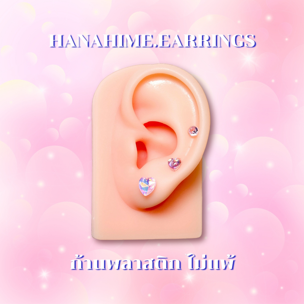 HanaHime.Earrings - Sparkle Pink Set ต่างหูก้านพลาสติก ต่างหูน่ารัก ต่างหูสีชมพู แพ้ง่ายใส่ได้
