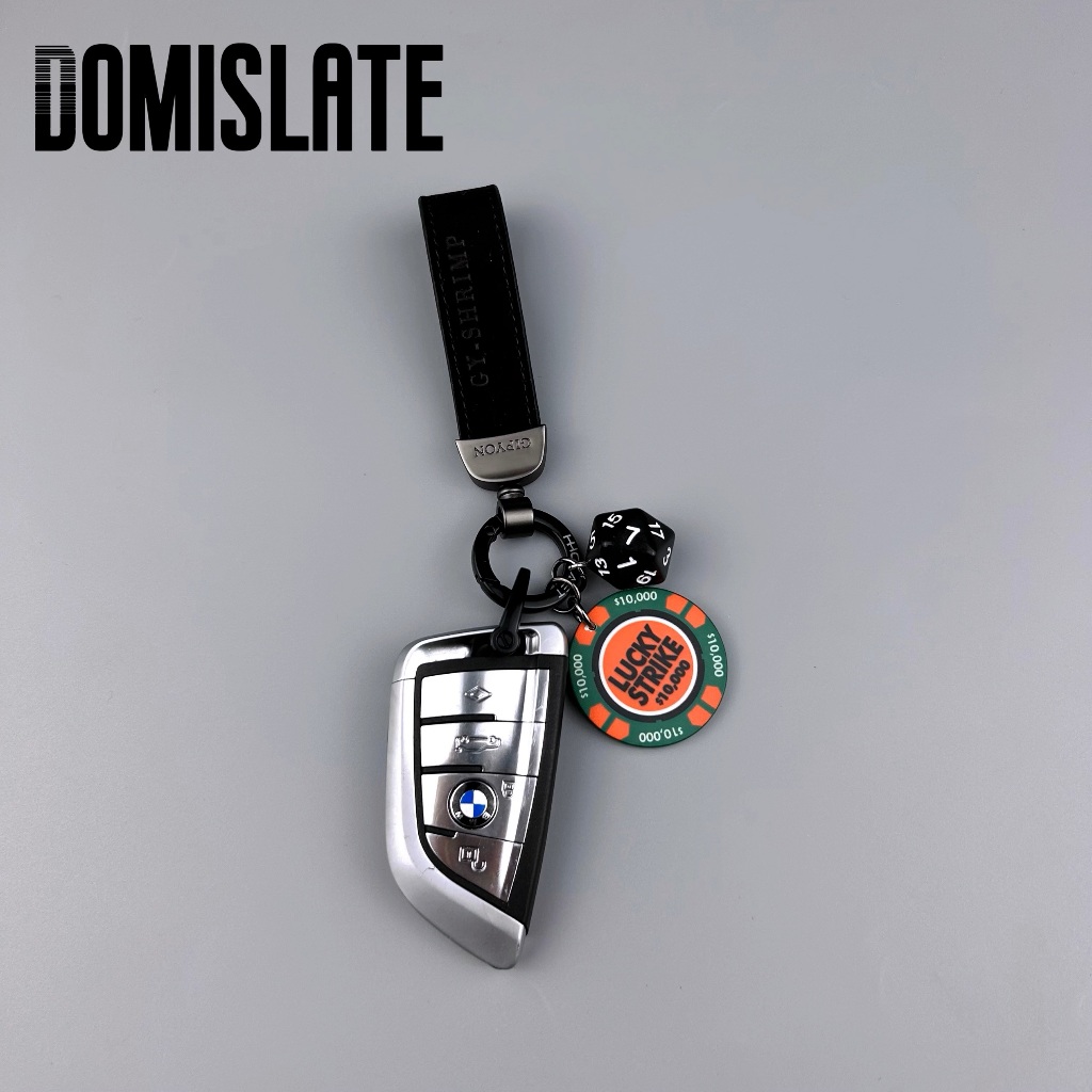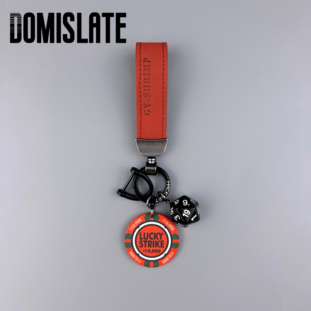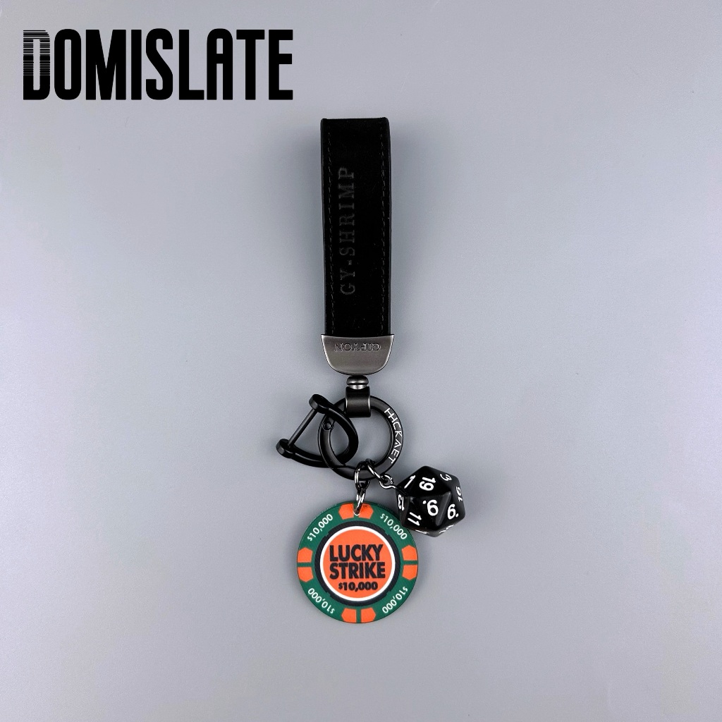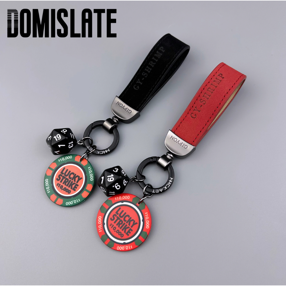 รุ่นใหม่พวงกุญแจหนังแท้จี้LuckyStrikeชิปเซรามิกสีสันสดใสใช้กับพวงกุญแจรถที่ห้อยกระเป๋าของขวัญทันสมัย