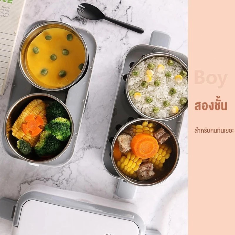 Biaowang กล่องข้าวไฟฟ้า กล่องอุ่นอาหารอัตโนมัติ ปิ่นโตไฟฟ้า 2L กล่องอุ่นอาหารไฟฟ้าแบบพกพา ปิ่นโตไฟฟ้า Iunch Box Set