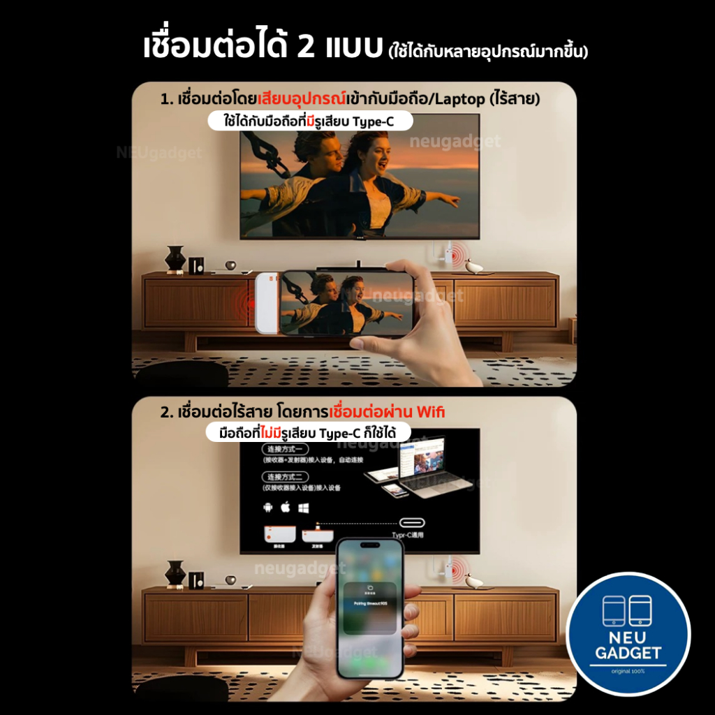 [ของแท้ มีประกัน❗️] อุปกรณ์แชร์หน้าจอไร้สาย 1080P HDTV to Type-C HDMI Wireless Transmitter Receiver รับสัญญาณถึง 50เมตร