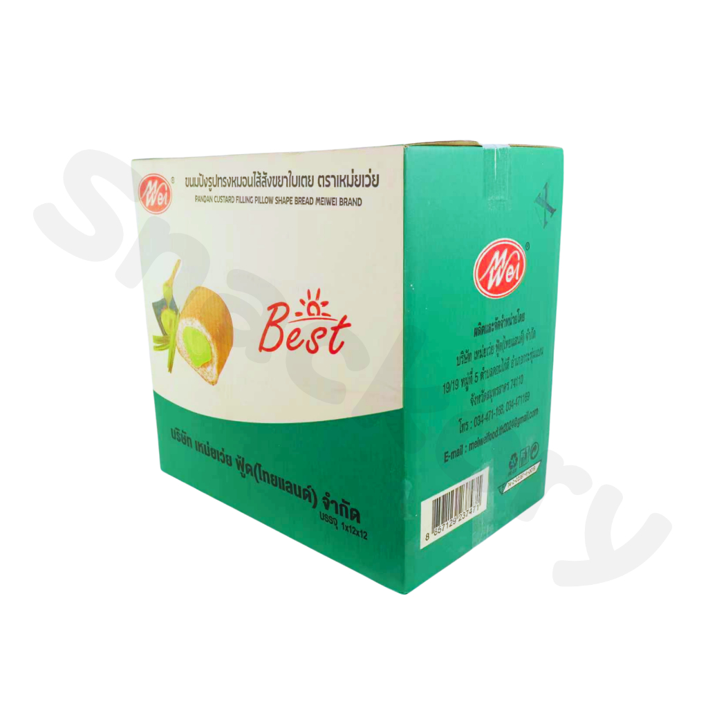 ขนมปังหมอนใบเตยสังขยาพรีเมียม Meiwei ยกลัง 12 แพ็ค รวม 144 ชิ้น | ขนมปังหมอนใหญ่ อิ่มแป้งแน่นฟู
