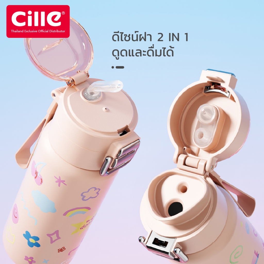 [รับประกัน 1 ปี] Cille Pastel แก้วสแตนเลส 316 เก็บร้อน-เย็น ดื่มได้ 2 แบบ มีหลอดพร้อม Vacuum Bottle 560 ml รุ่น 25126