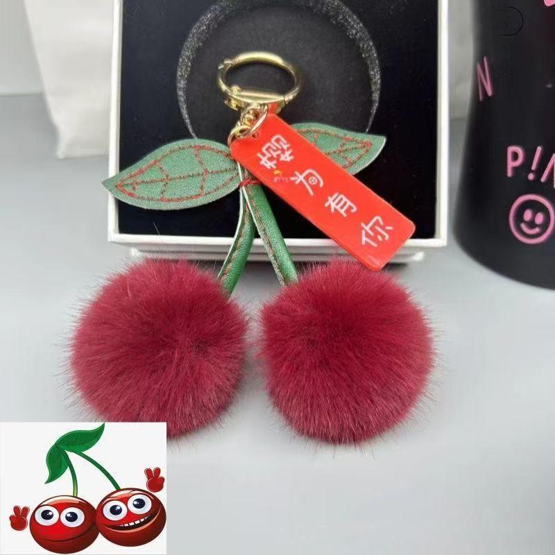 【พร้อมส่ง】พวงกุญแจเชอร์รี่ น่ารักขนปุย ตกแต่งกระเป๋า สไตล์เกาหลี