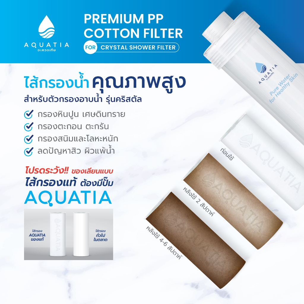 [ตัวกรอง+ไส้กรอง3ชิ้น] Aquatia ที่กรองน้ำฝักบัวรุ่น Crystal (อะควอเทีย ฟิลเตอร์กรองน้ำ)
