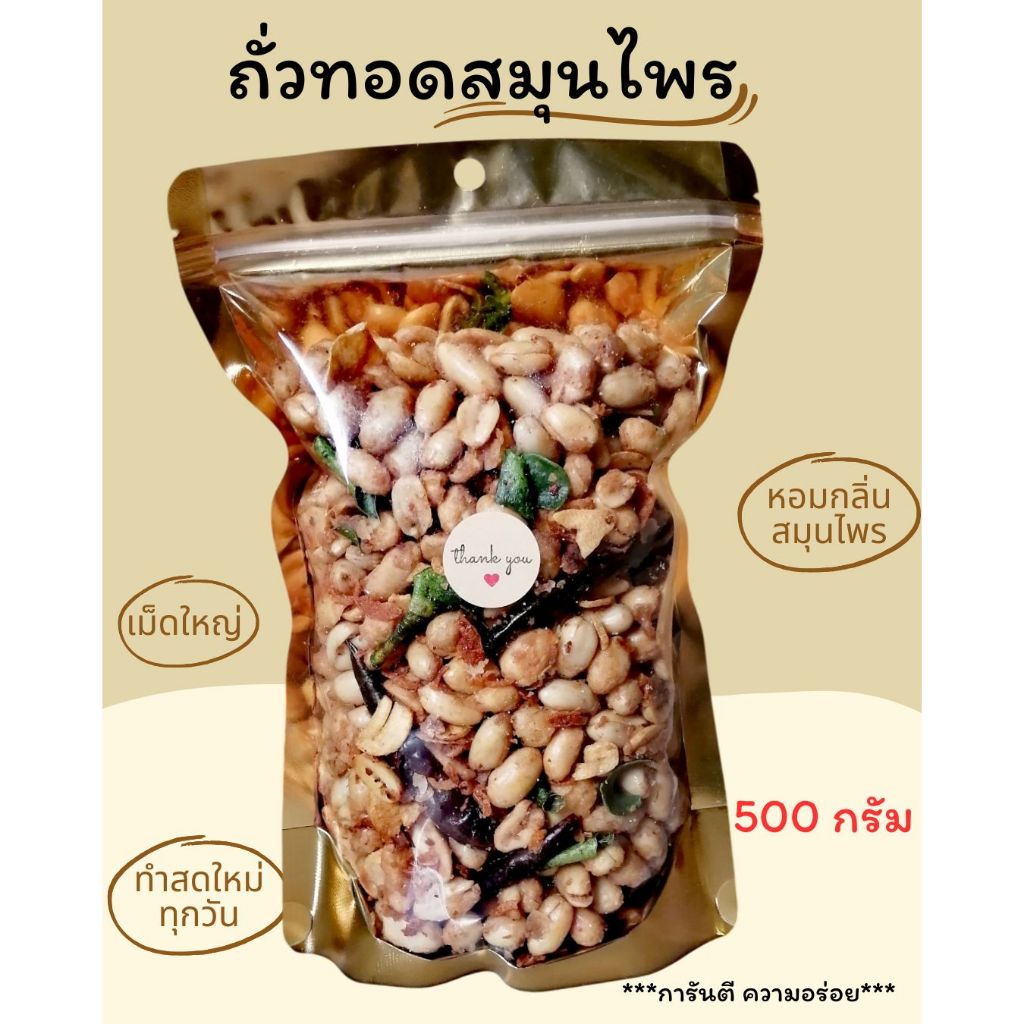 ถั่วทอดสมุนไพร พร้อมทาน เม็ดใหญ่ สดใหม่ กรอบ อร่อย หอมสมุนไพร