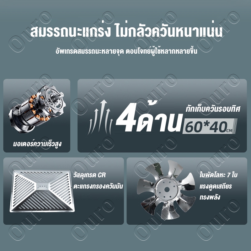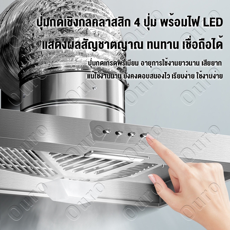 รูปแบบปุ่ม🔥เครื่องดูดควันในครัว 12นิ้ว 120W เครื่องดูดควัน สแตนเลส พัดลมระบายอากาศครัว พร้อม 3mท่อลม Range Hoods