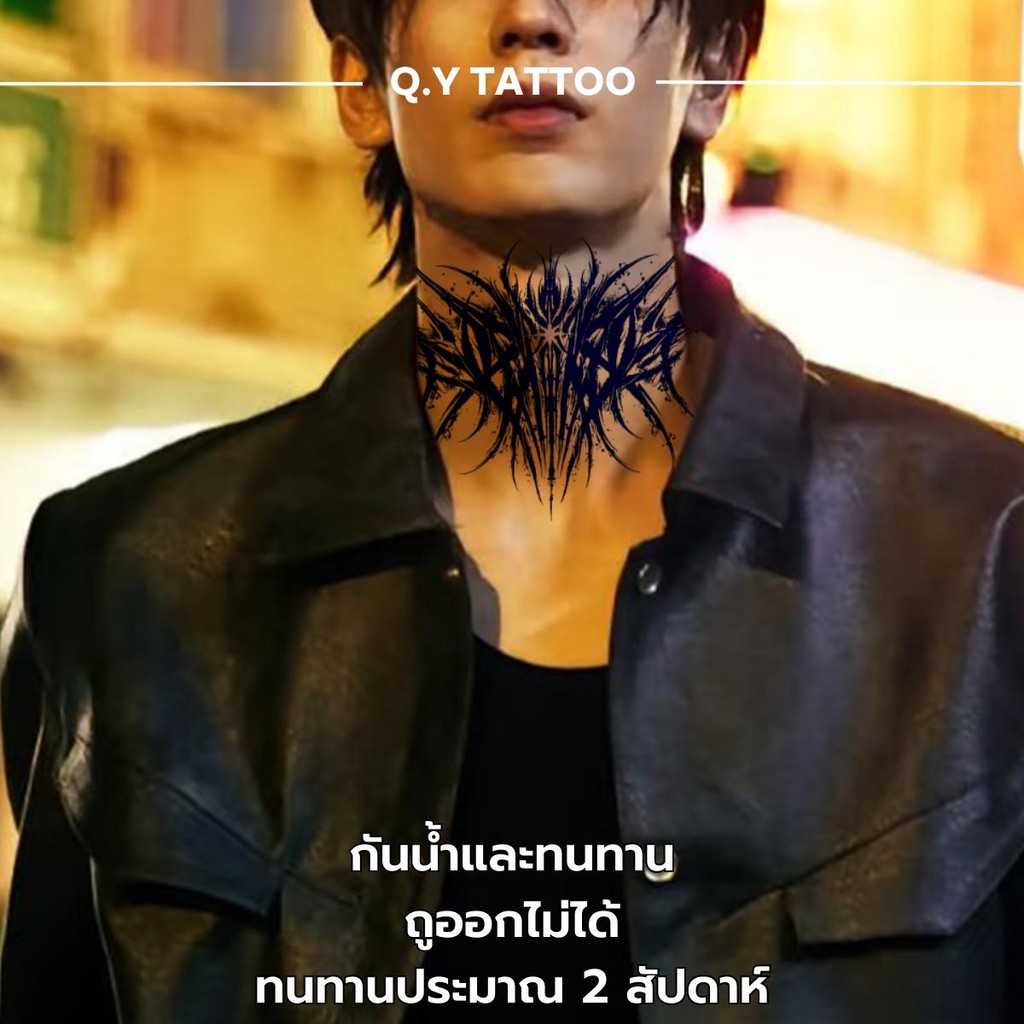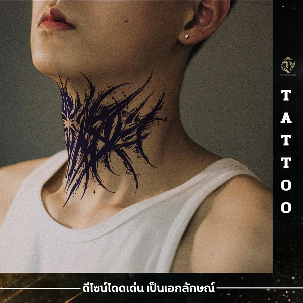 แทททูกันน้ำ 15 วัน ติดคอ ลายเส้น เท่ๆขาวดำ รอยสักสมุนไพร กันรอย ติดทน เหมือนจริง tattoo sticker