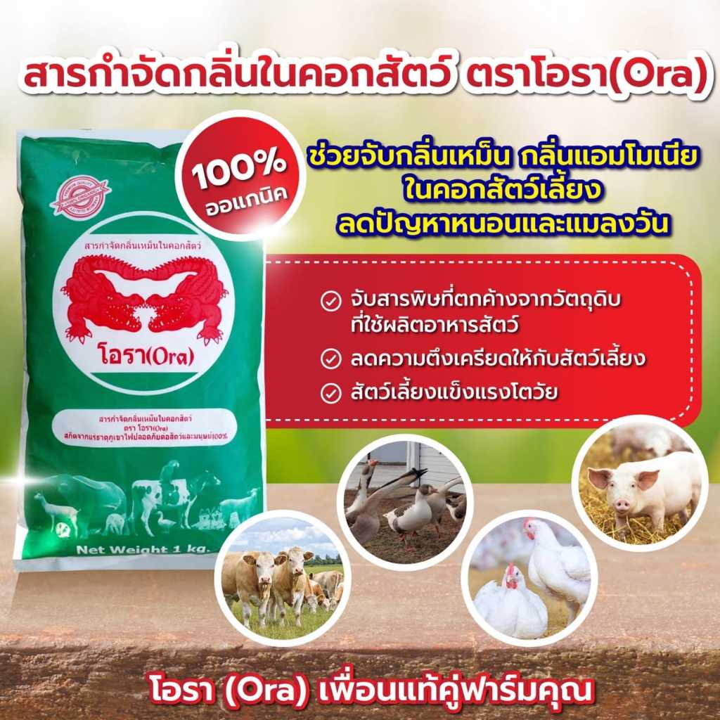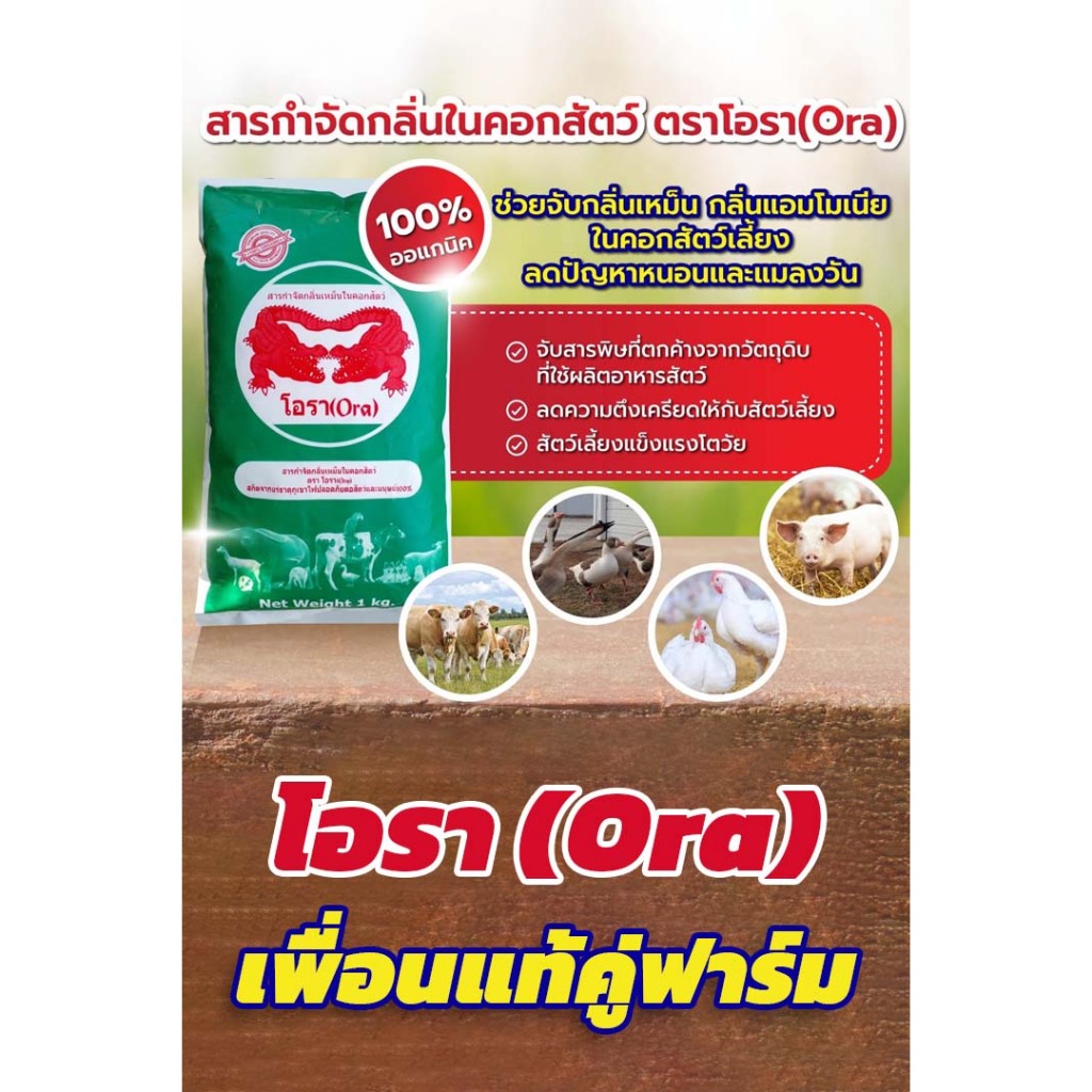 สารกำจัดดับกลิ่นเหม็น (ชุด 2 ถุง) คอกสัตว์เลี้ยง วัวควาย หมู เป็ดไก่ แกะ แพะ ตราโอรา Ora
