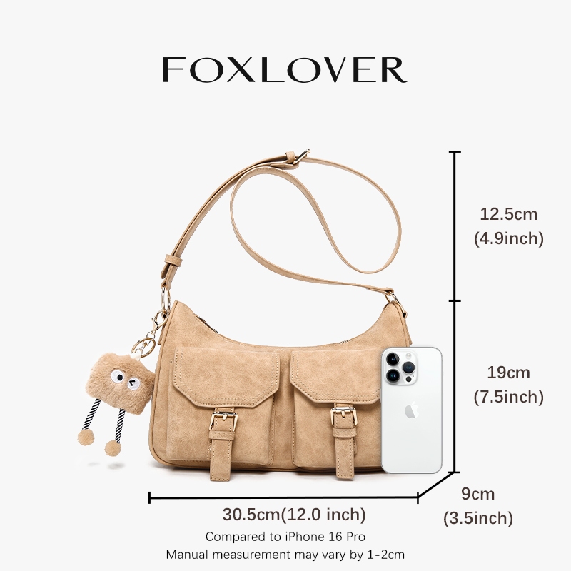 FOXLOVER กระเป๋าสะพายไหล่แฟชั่นย้อนยุคสำหรับผู้หญิงที่ใส่โทรศัพท์มือถือได้ 2026 แบบใหม่