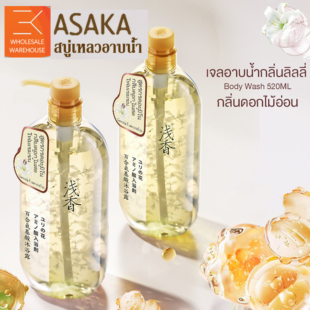Asaka Shower Gel Lily Fragrance, กลิ่นหอมติดทนนาน, สบู่เหลว, เจลอาบน้ํา, 80g