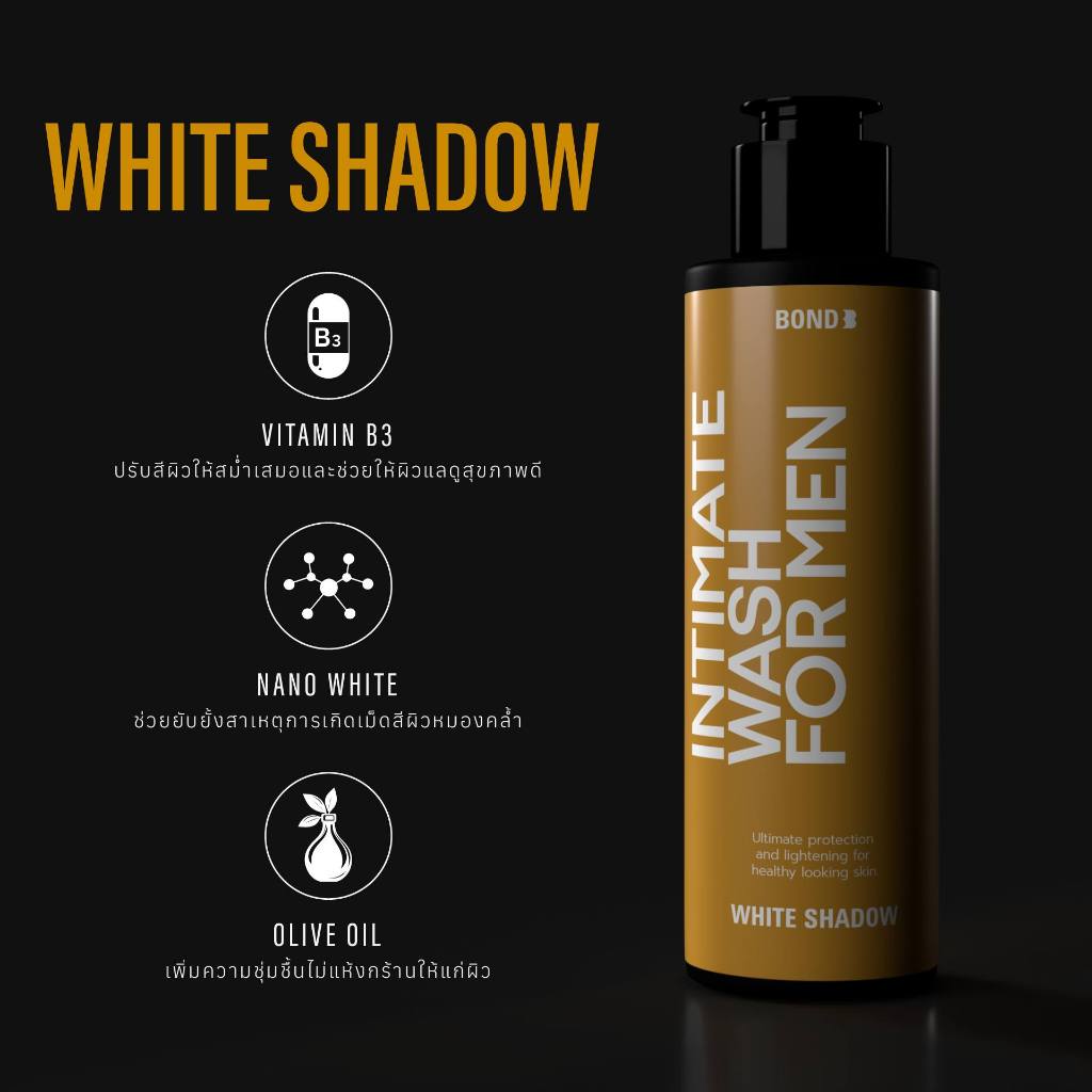[Packx3] Bond Men's Intimate Wash White Shadow 130 ml. (สูตรบำรุง) แพ็ค 3 ชิ้น