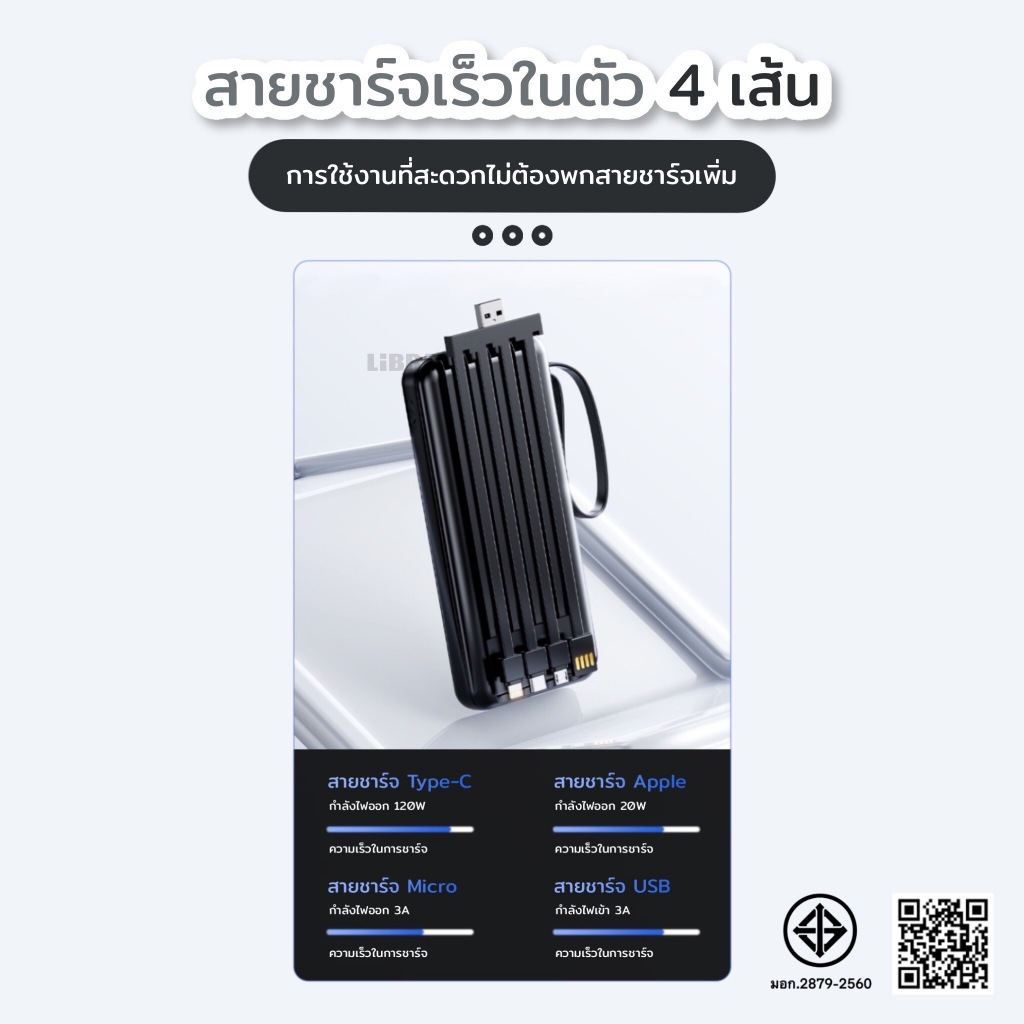 [New] LiBRA Q63 พาวเวอร์แบงค์ 50000mAh Fastcharge 120w ความจุใหญ่ สายหลัง 4สาย ตัวสายสามารถถอดได้ [รับประกัน 3 เดืออน]